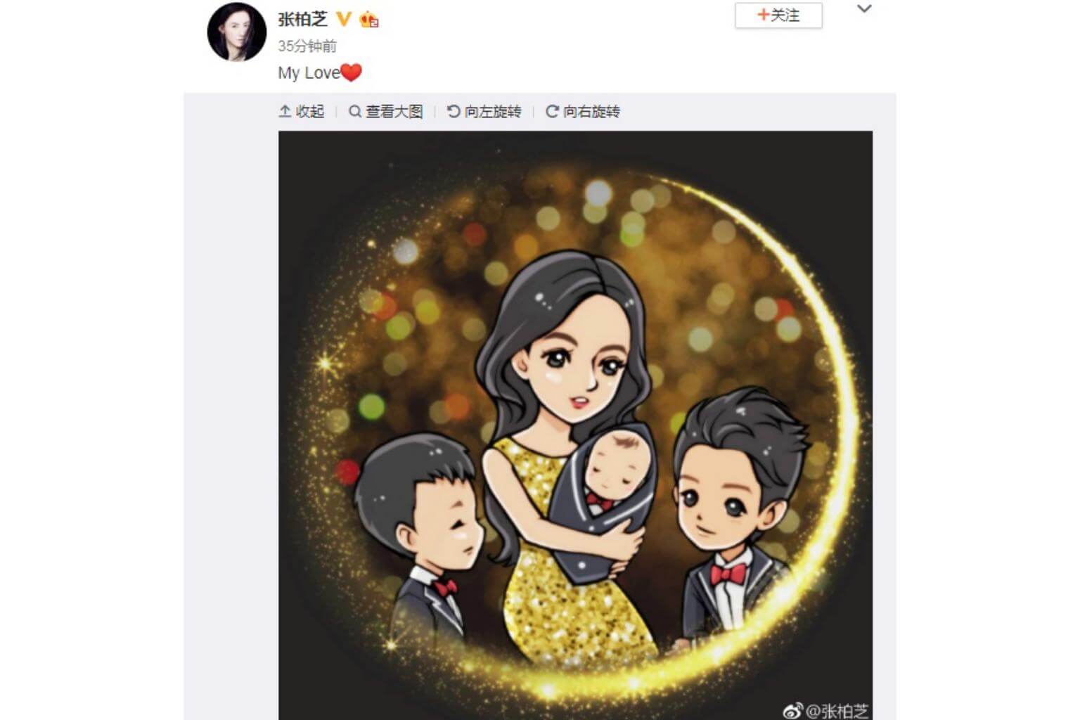 At 10.30am on Monday, Cheung posted to Weibo a drawing of her and her three sons, with a short caption: "My Love" followed by a heart emoji.
