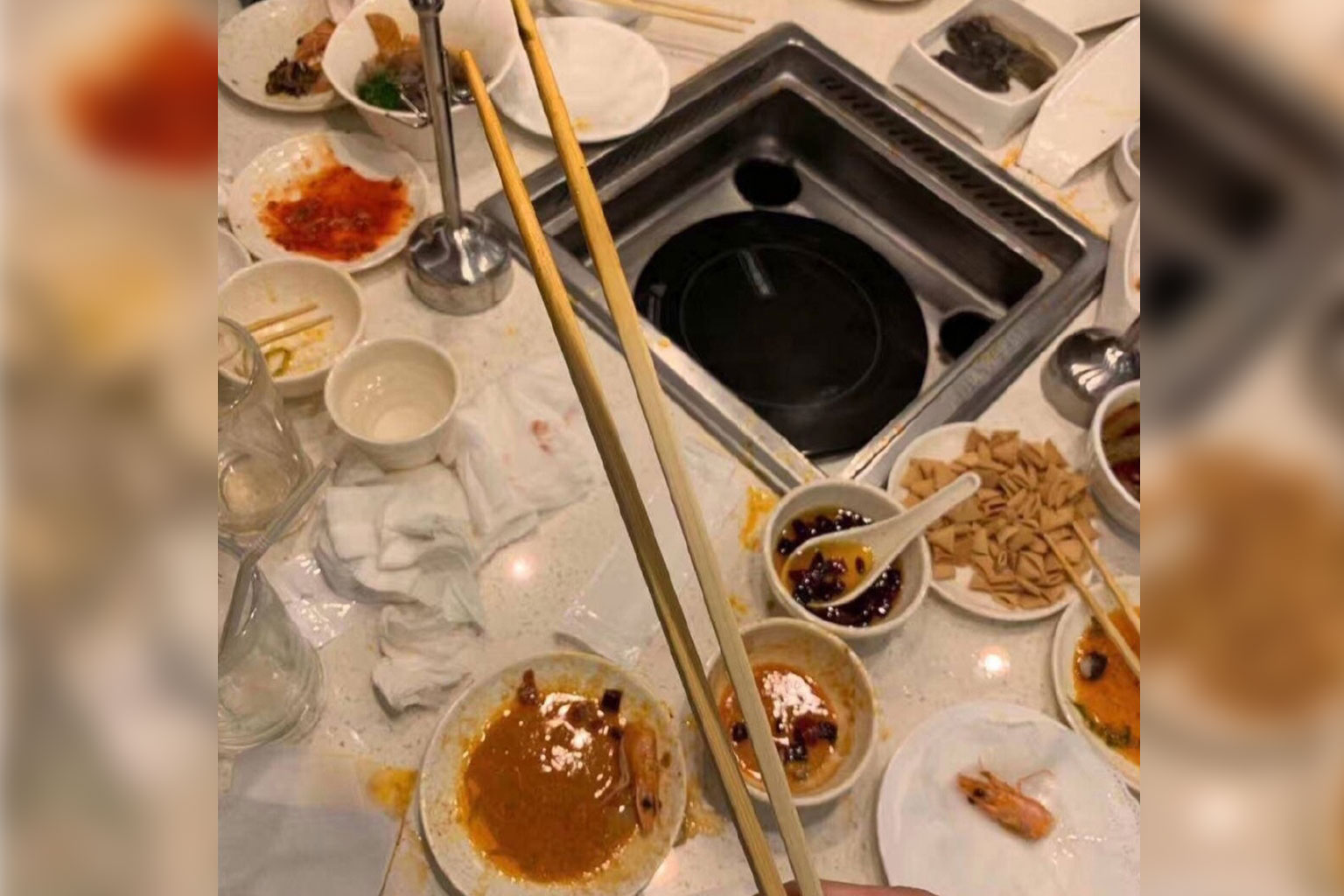After the celebrities finished their dinner at the hotpot restaurant, someone took a photo of the private room after they left and posted it online to try to auction the used items. The asking prices were not listed in the photo circulated on China's social media network Weibo.