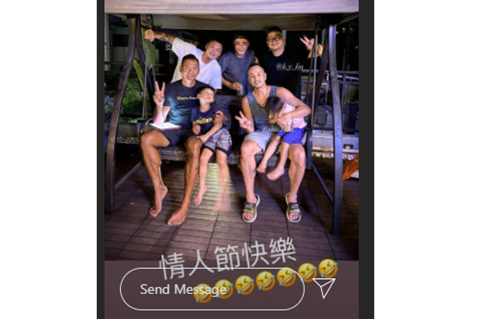 Stars Blackie Chen (front row, left), Jason Tang (front row, right), Shawn Yue (back row, left) and Wallace Huo (back row, centre) were gathered at Tang’s home for Chinese Valentine’s Day.