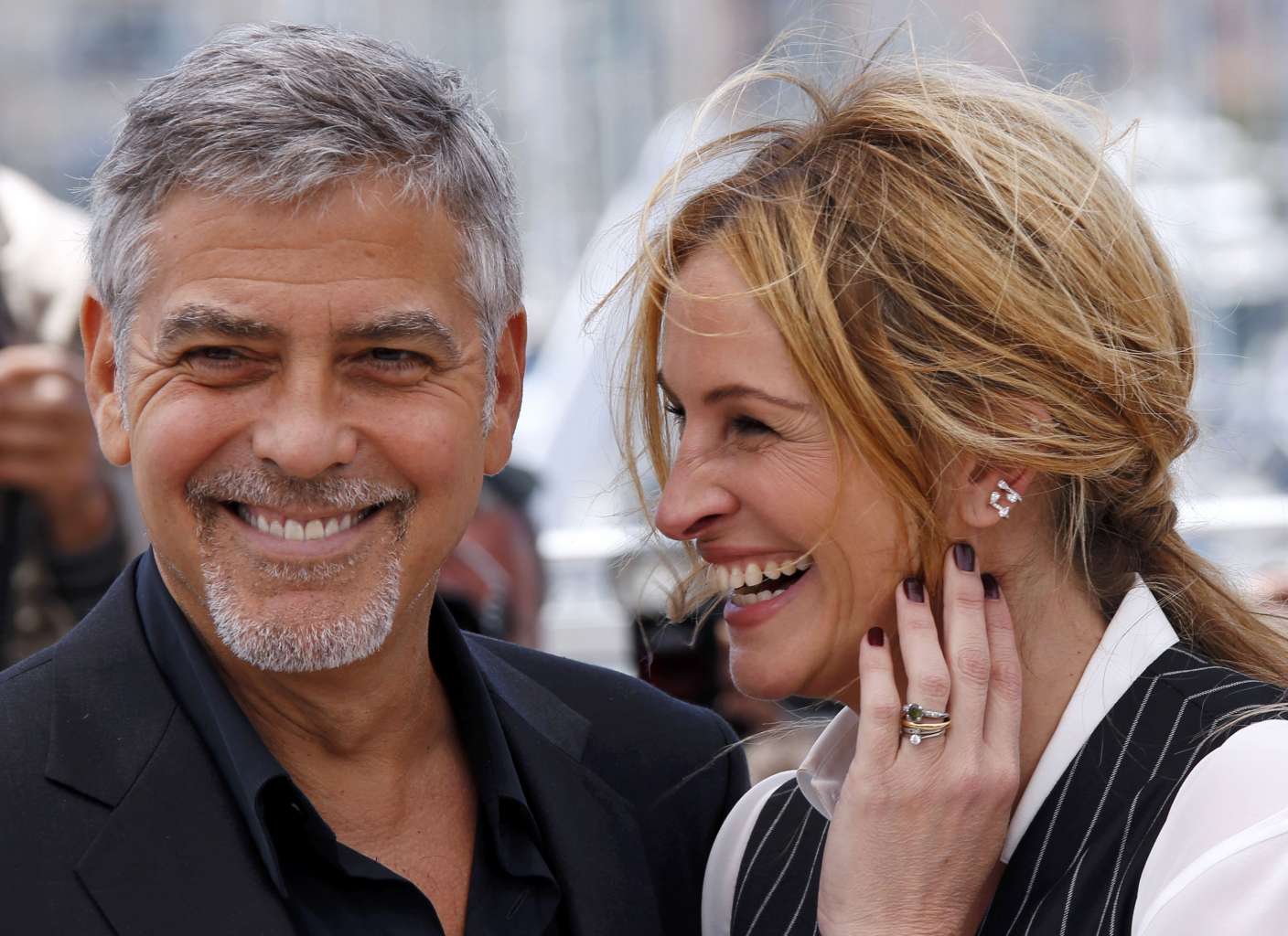 Cast members George Clooney and Julia Roberts and pose during a Money Monster photocall in Cannes.