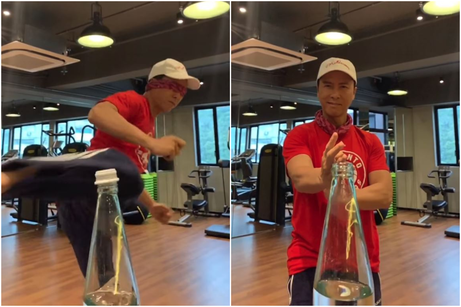 Donnie Yen floors competition, completing #bottlecapchallenge blindfolded