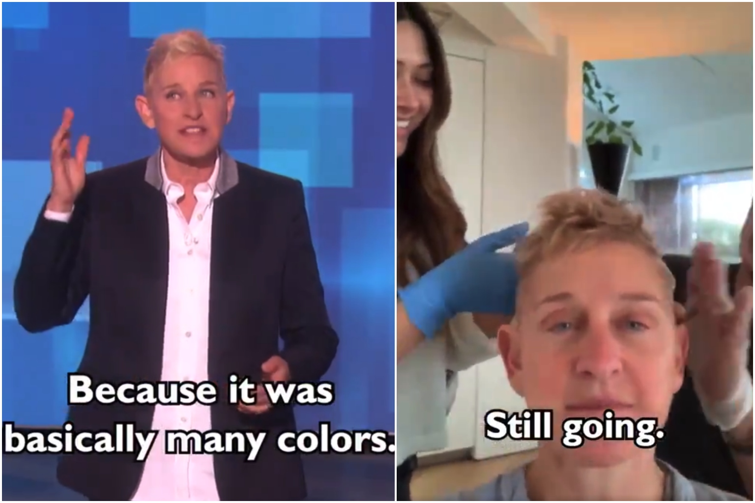 DeGeneres, 61, said when she checked the mirror, she did not like the results.