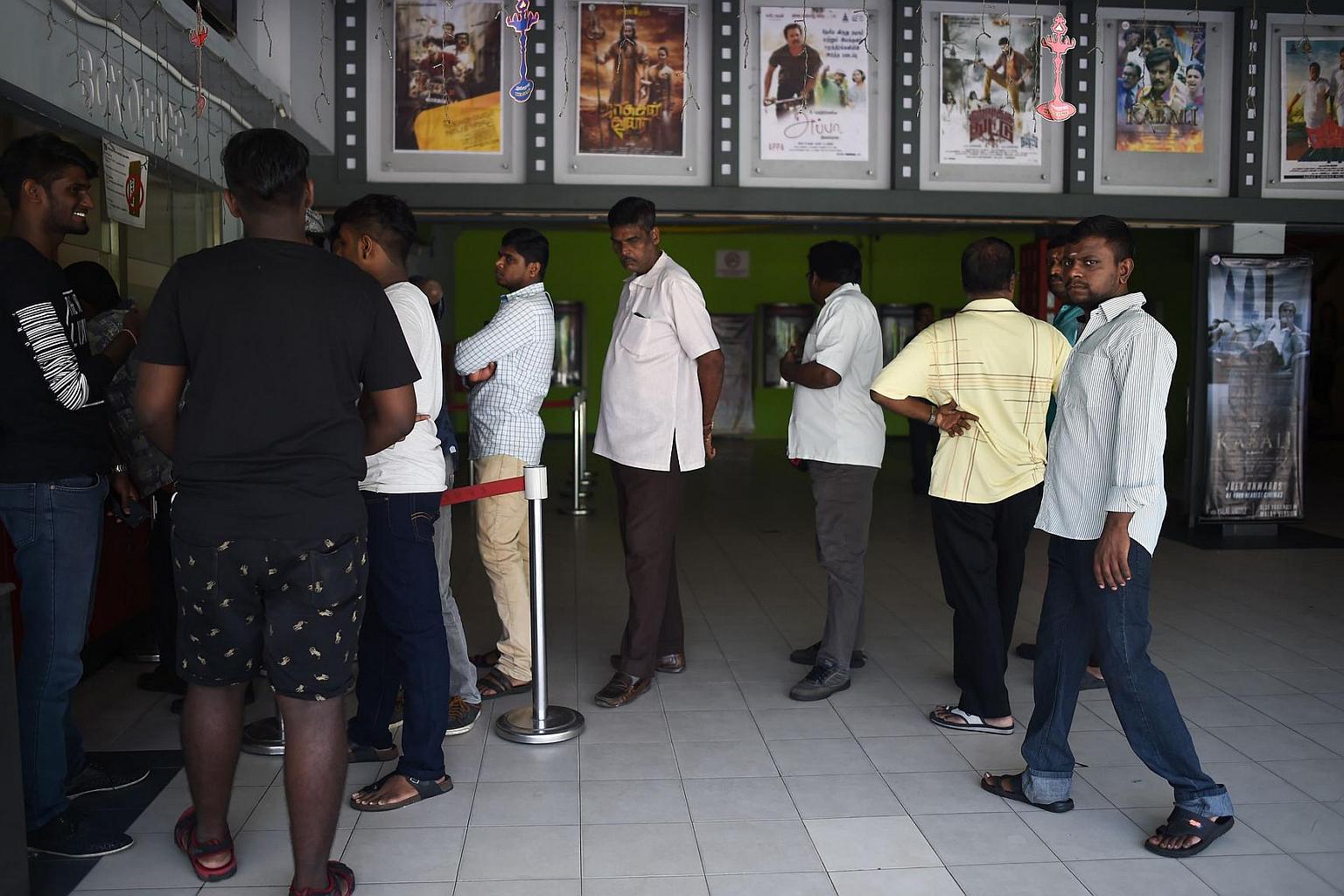People queuing up to buy tickets for the Tamil film Kabali at a cinema in Kuala Lumpur.