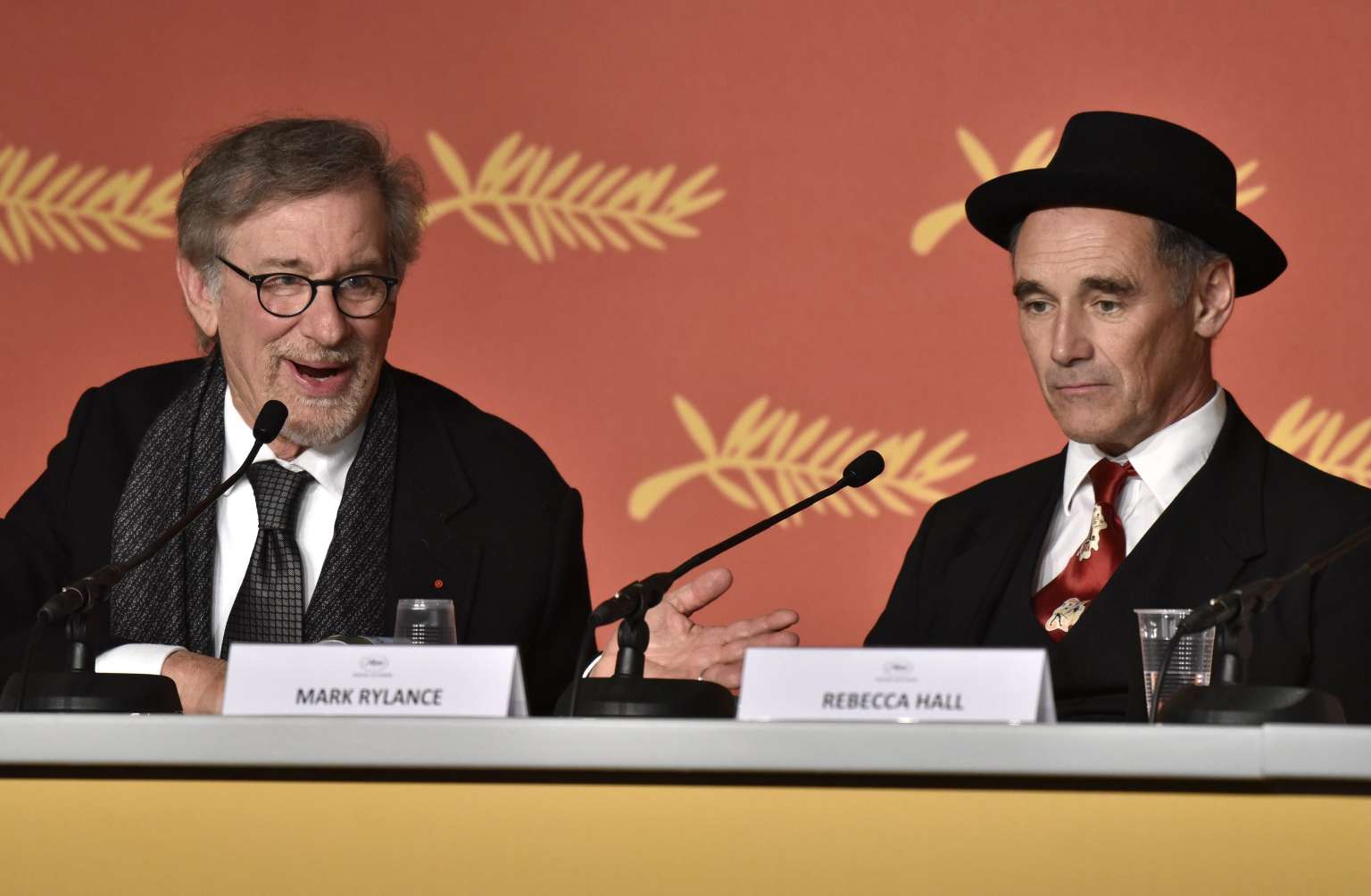 Mark Rylance (right) and Steven Spielberg attend the press conference for The BFG at the 69th Cannes Film Festival, on May 14, 2016.