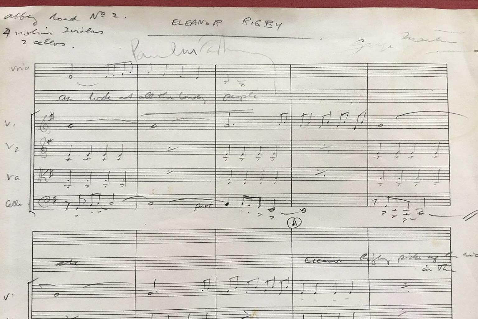 Handwritten score for Eleanor Rigby, with Paul McCartney's signature, up for auction