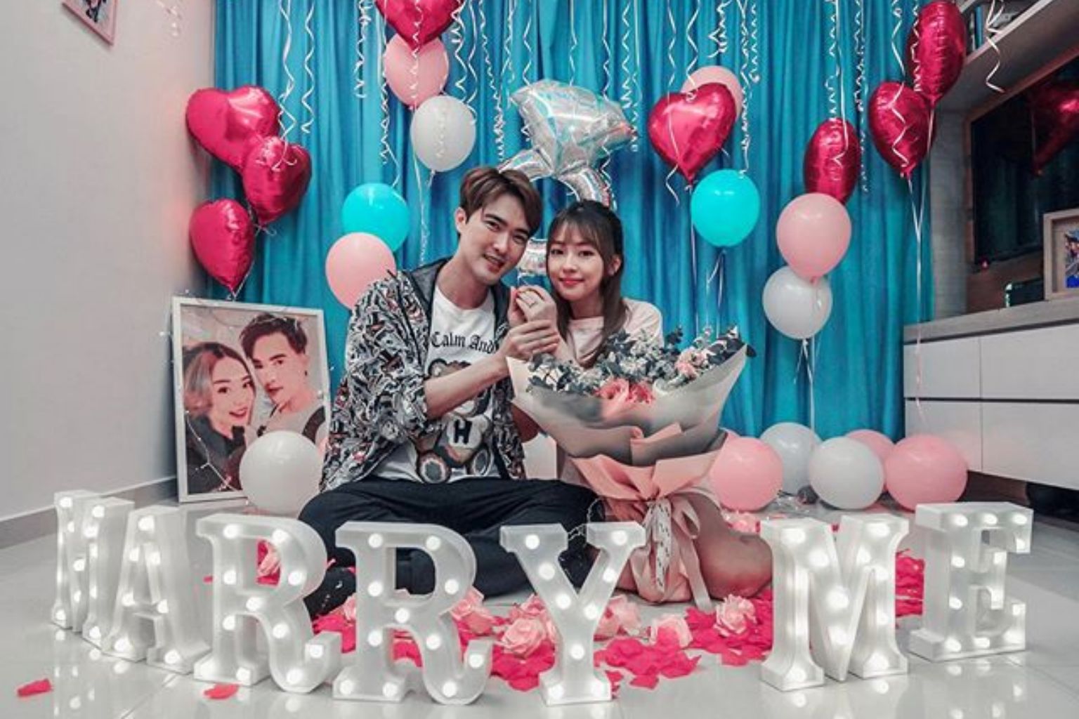 A picture posted by Lee Teng shows a thoughtful proposal that unfolded in a room filled with balloons, flower petals and photos of the couple.