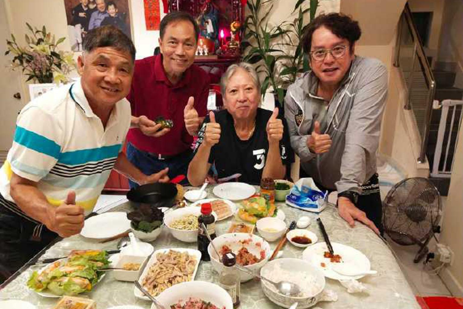 Hong Kong singer Alan Tam (right) posts photos of him with actor Sammo Hung (second from right) at a lunch with two friends.
