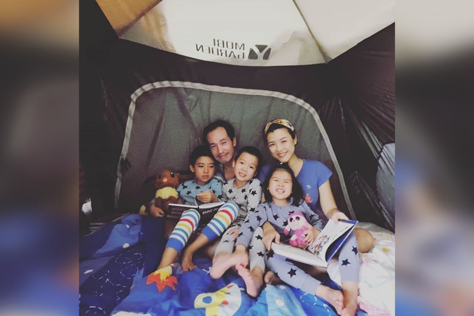 Hong Kong celebrity couple Moses Chan and Aimee Chan take their children on a camping trip - at home