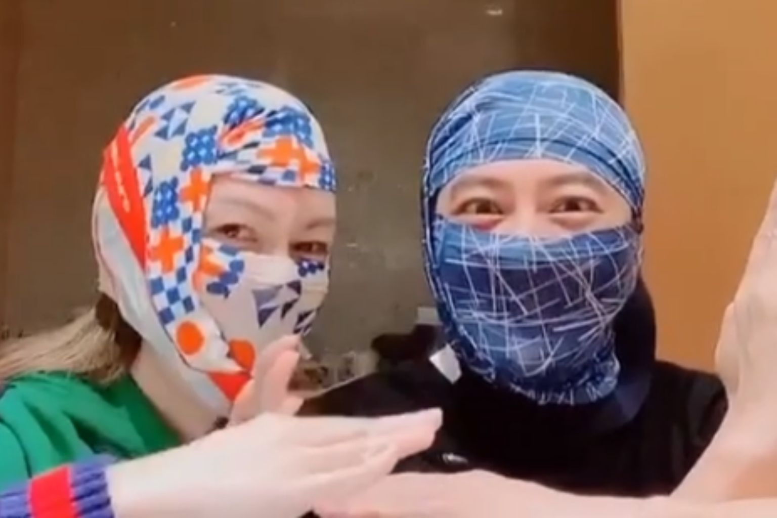 Singer Eric Suen and his wife put the briefs on their heads and adjusted them so that their hair and mouths were covered, leaving only their eyes exposed.