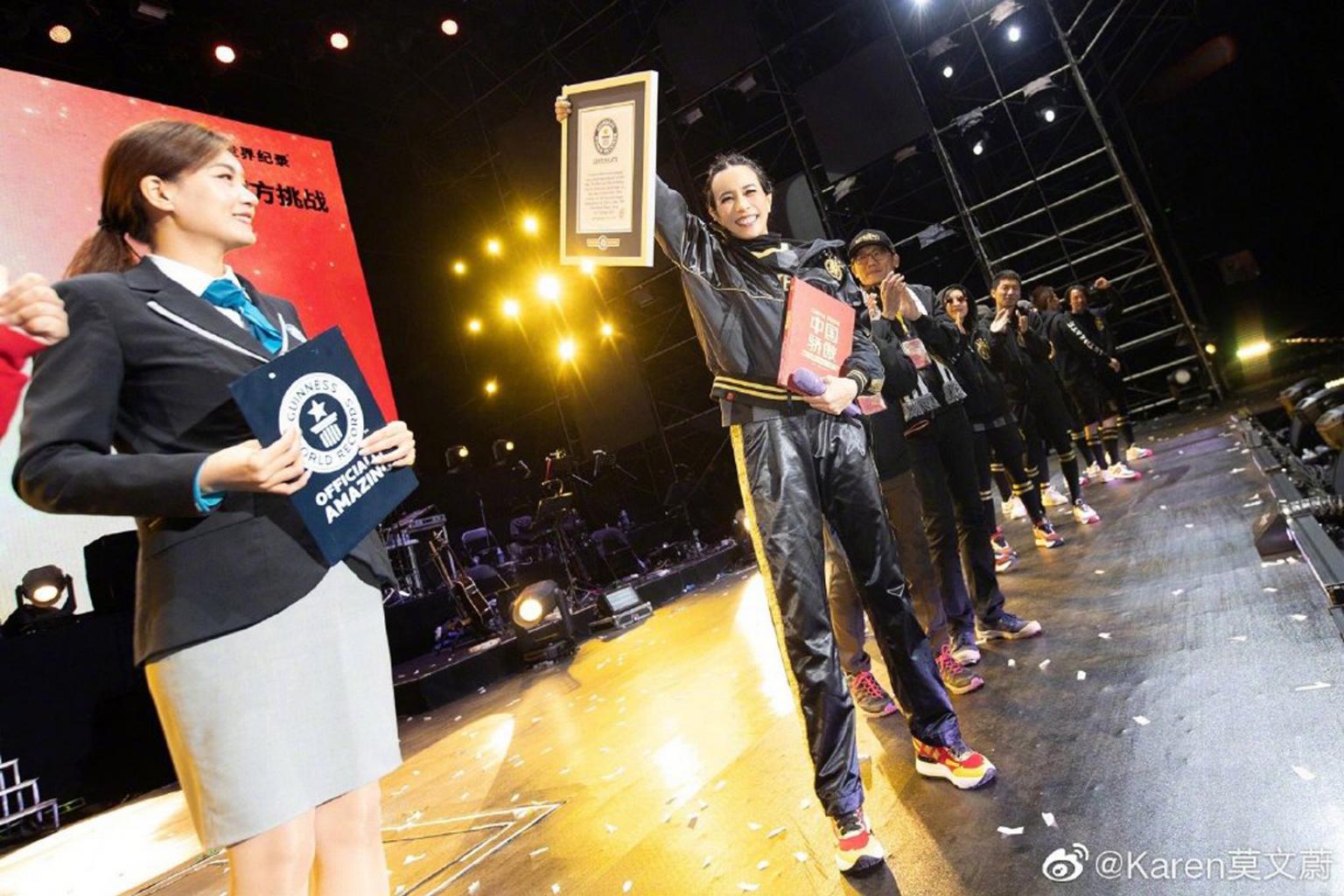 Karen Mok claimed a Guinness World Record after her Ultimate Karen Mok Show at the Lhasa Masses Culture & Sports Centre Oct 12, 2019.