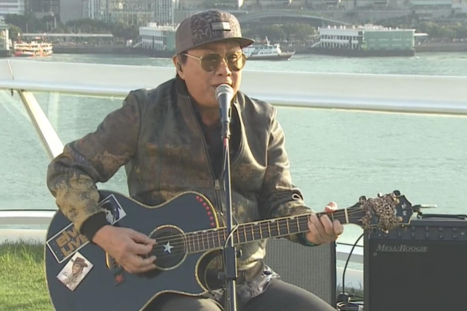 Hui, 71, performed for about one hour on the open rooftop of the Harbour City mall in Tsim Sha Tsui, with Hong Kong's Victoria Harbour as the backdrop.
