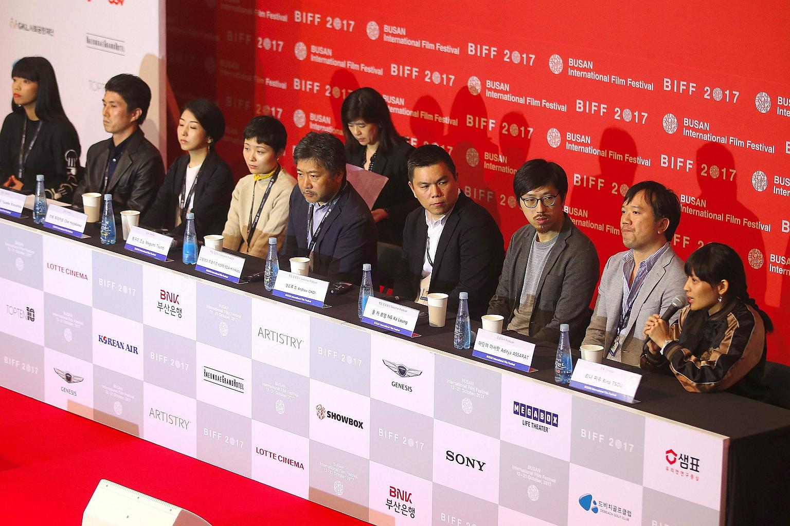 Taiwanese director Rina B. Tsou (right) speaking at a press conference for the official launch of the Ten Years international project during the 22nd Busan International Film Festival in Busan.