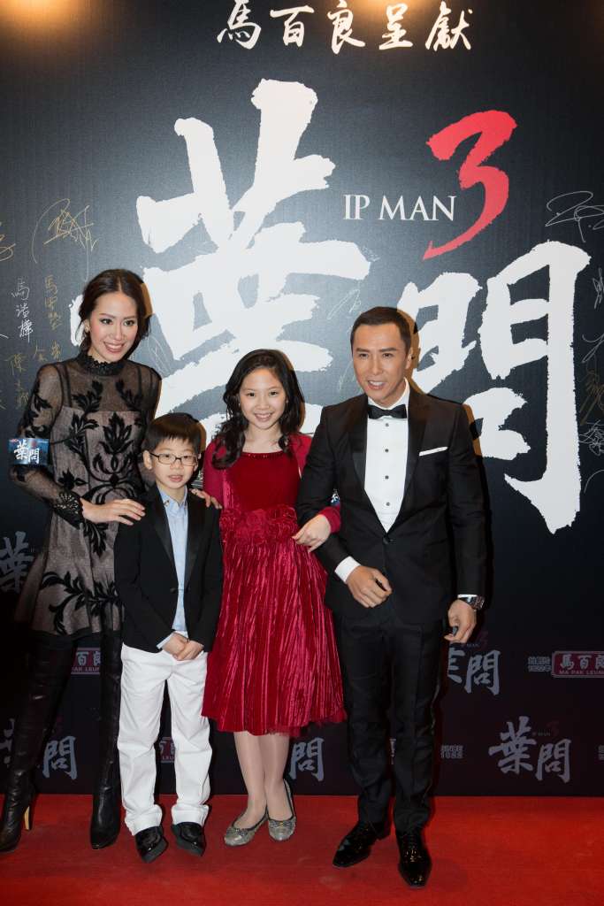 Hong Kong action star Donnie Yen (right) and his wife, Cecilia Wang (extreme left) and their children at Resorts World Sentosa on Jan 15, 2016.