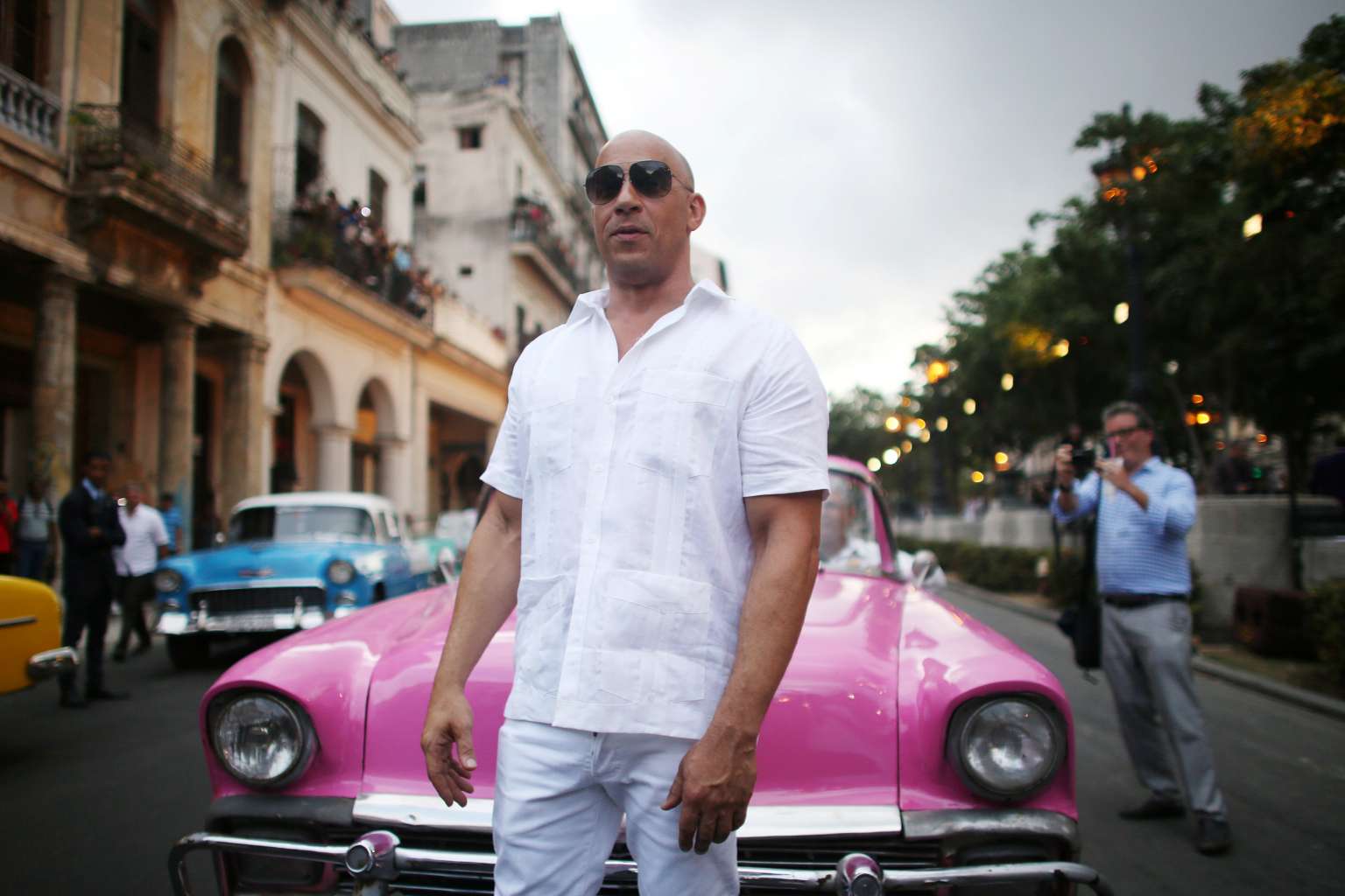 Actor Vin Diesel poses before a fashion show by Karl Lagerfeld in Cuba on May 3, 2016.