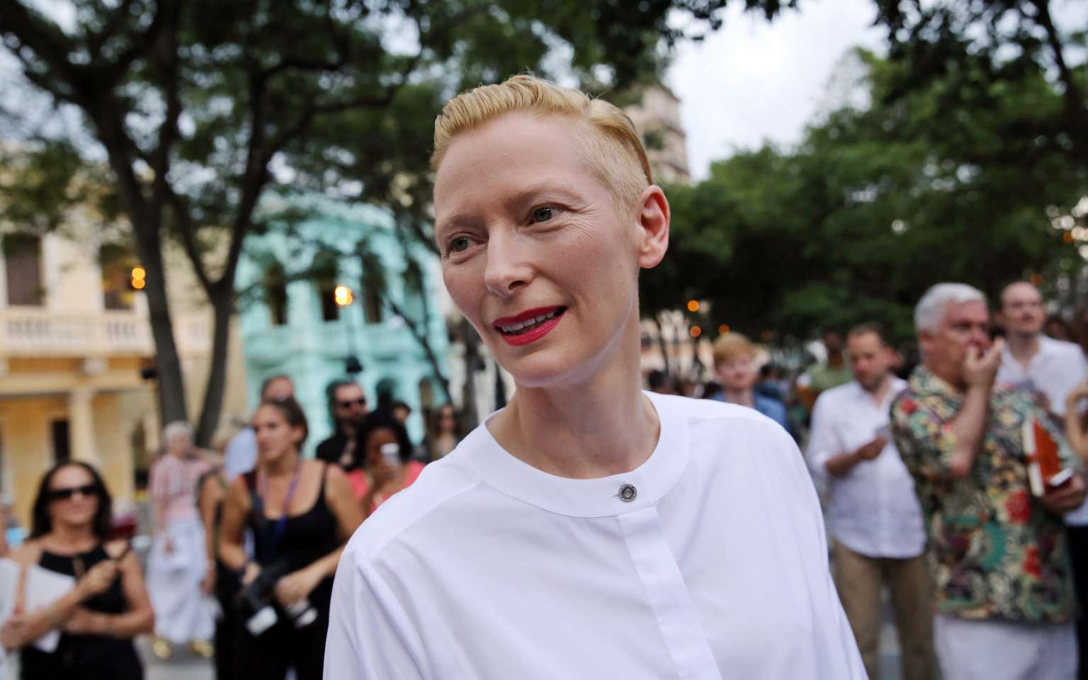 Actress Tilda Swinton poses before a fashion show by Karl Lagerfeld in Cuba on May 3, 2016.