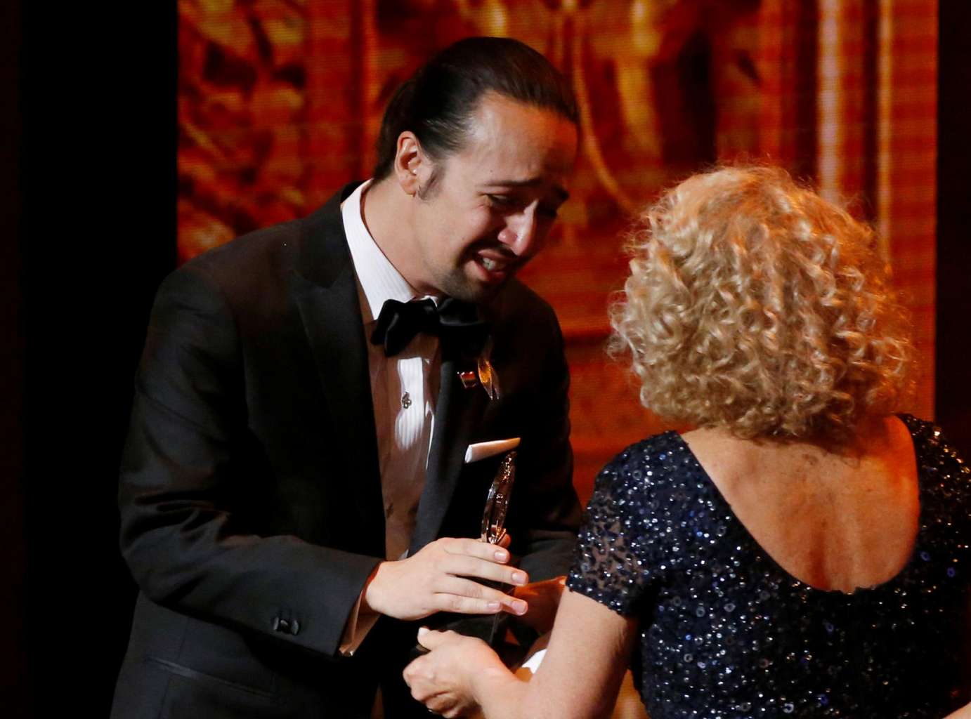 Actor Lin-Manuel Miranda of the hit hip-hop musical Hamilton accepts the award for Best Original Score during the American Theatre Wing's 70th annual Tony Awards in New York.