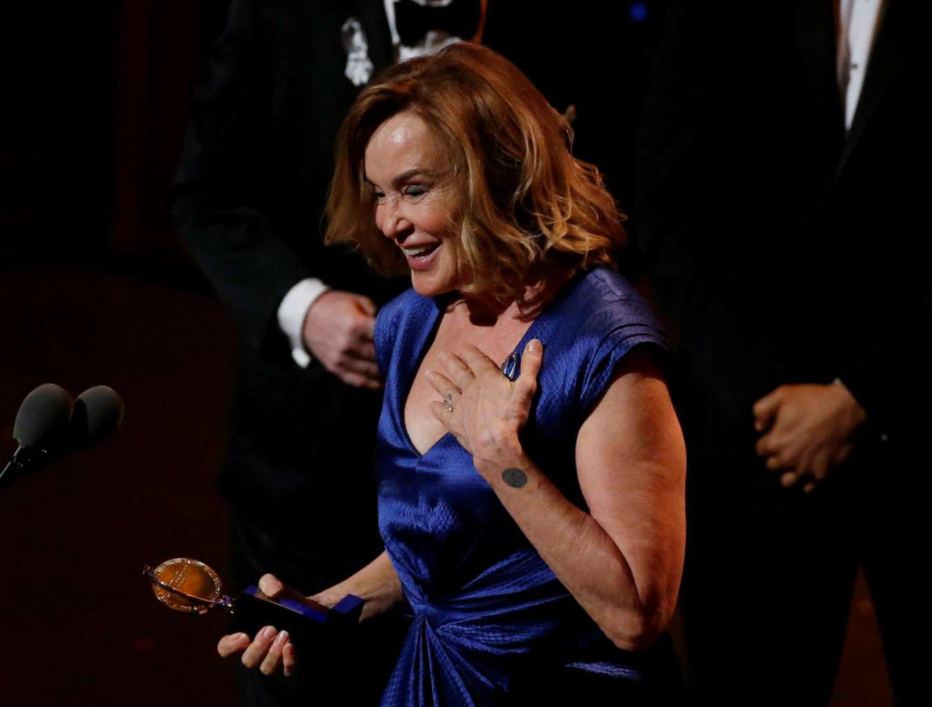 Jessica Lange accepts the award for best performance by an actress in a leading role for a play for Long Day's Journey Into Night.
