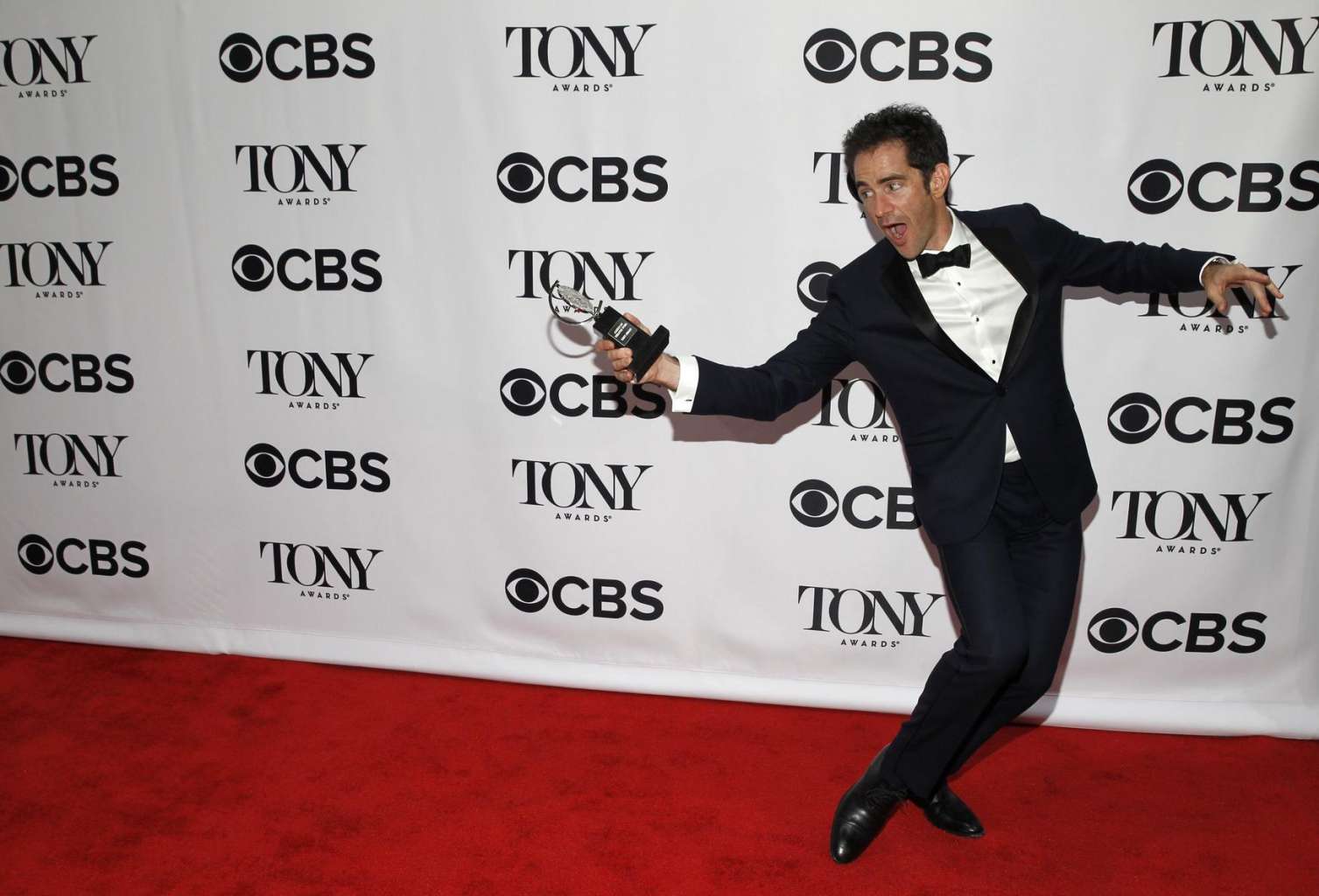 Choreographer Andy Blankenbuehler poses backstage with his award for Best Choreography for Hamilton.