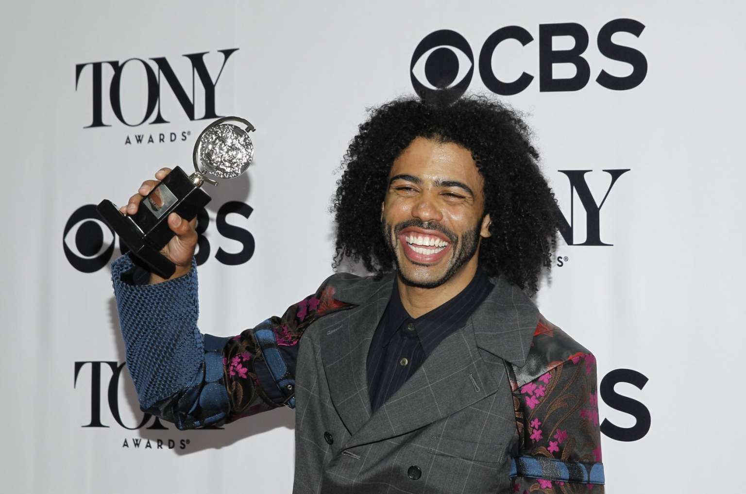 Actor Daveed Diggs poses with his award for best performance by an actor in a featured role in a musical for Hamilton.