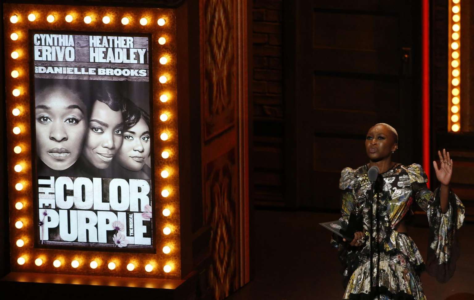 Cynthia Erivo accepts the award for best performance by an actress in a leading role in a musical for The Color Purple.