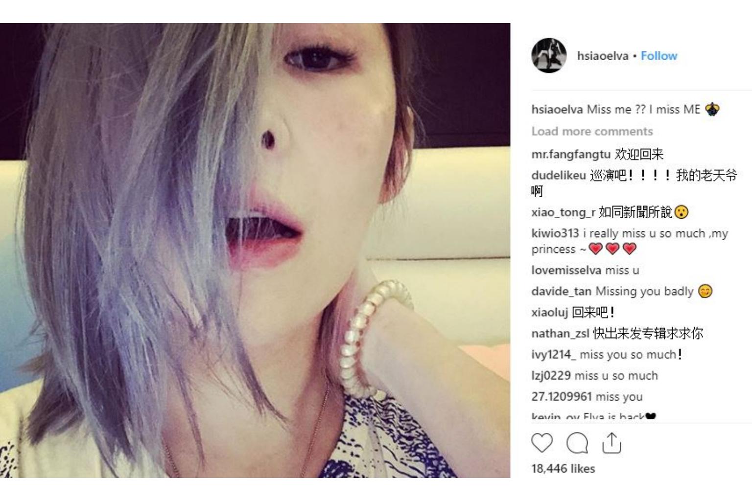 Taiwanese singer Elva Hsiao posted a selfie on her Instagram and Facebook accounts, with the caption "Miss me ?? I miss ME".