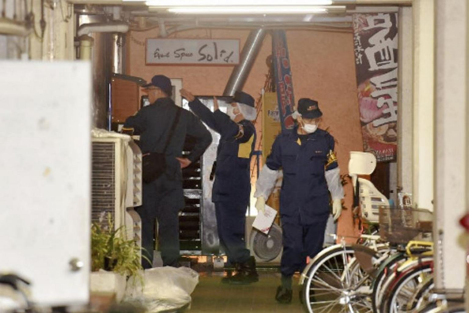 Police forensic investigators gathering evidence near where Japanese pop star Mayu Tomita was attacked by a fan, in Koganei, Tokyo, on May 21, 2016.