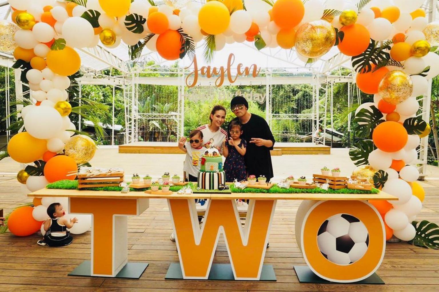 Jay Chou posted on Instagram a rare photo of his wife, actress-model Hannah Quinlivan, and their children, Hathaway and Romeo, as they celebrated Romeo's second birthday in June 2019.