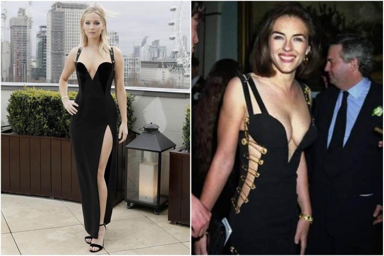 Jennifer Lawrence's revealing dress almost identical to Elizabeth Hurley's 1994 gown