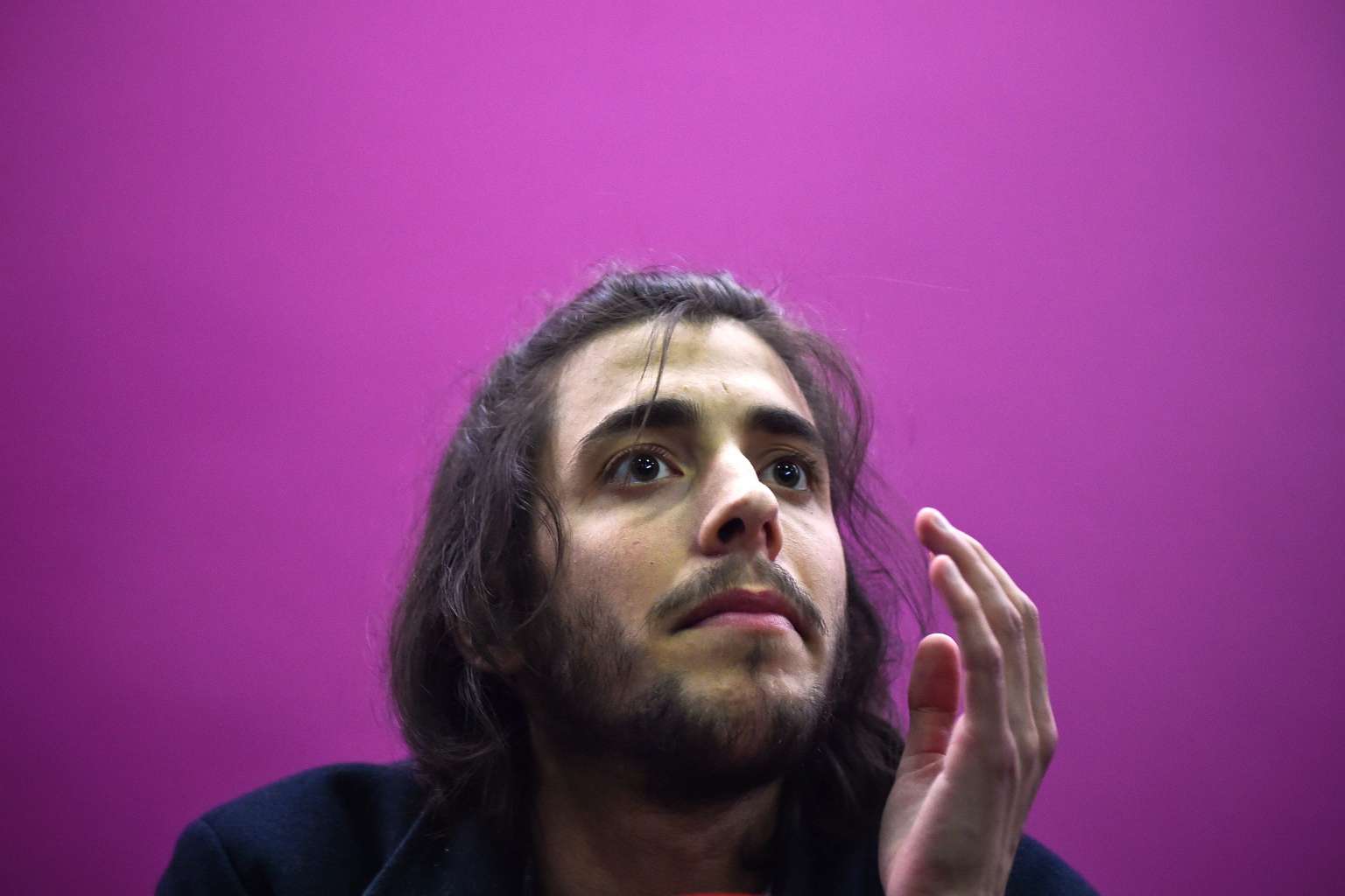 Winner of 2017 Eurovision contest Salvador Sobral looks on during a press conference Lisbon's airport on May 14, 2017.