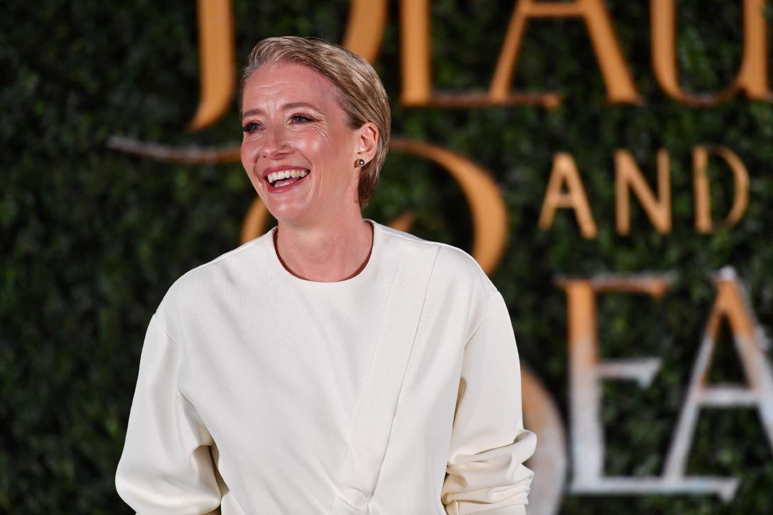 English actress Emma Thompson at the British launch of the film Beauty And The Beast in London, Feb 23, 2017.