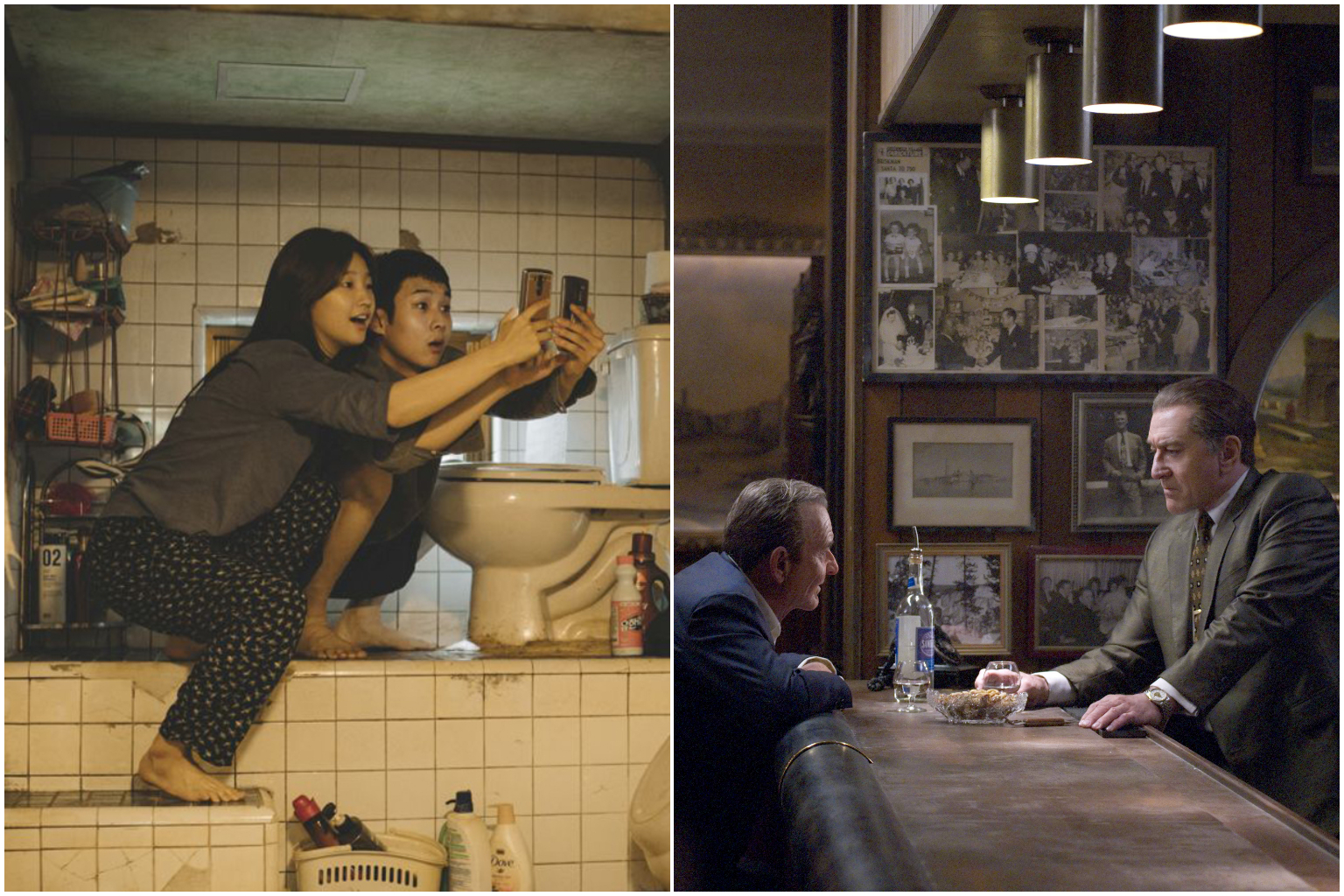 Parasite (left), the social satire from South Korea's Bong Joon-ho, and Martin Scorsese's tough-guy biopic The Irishman.