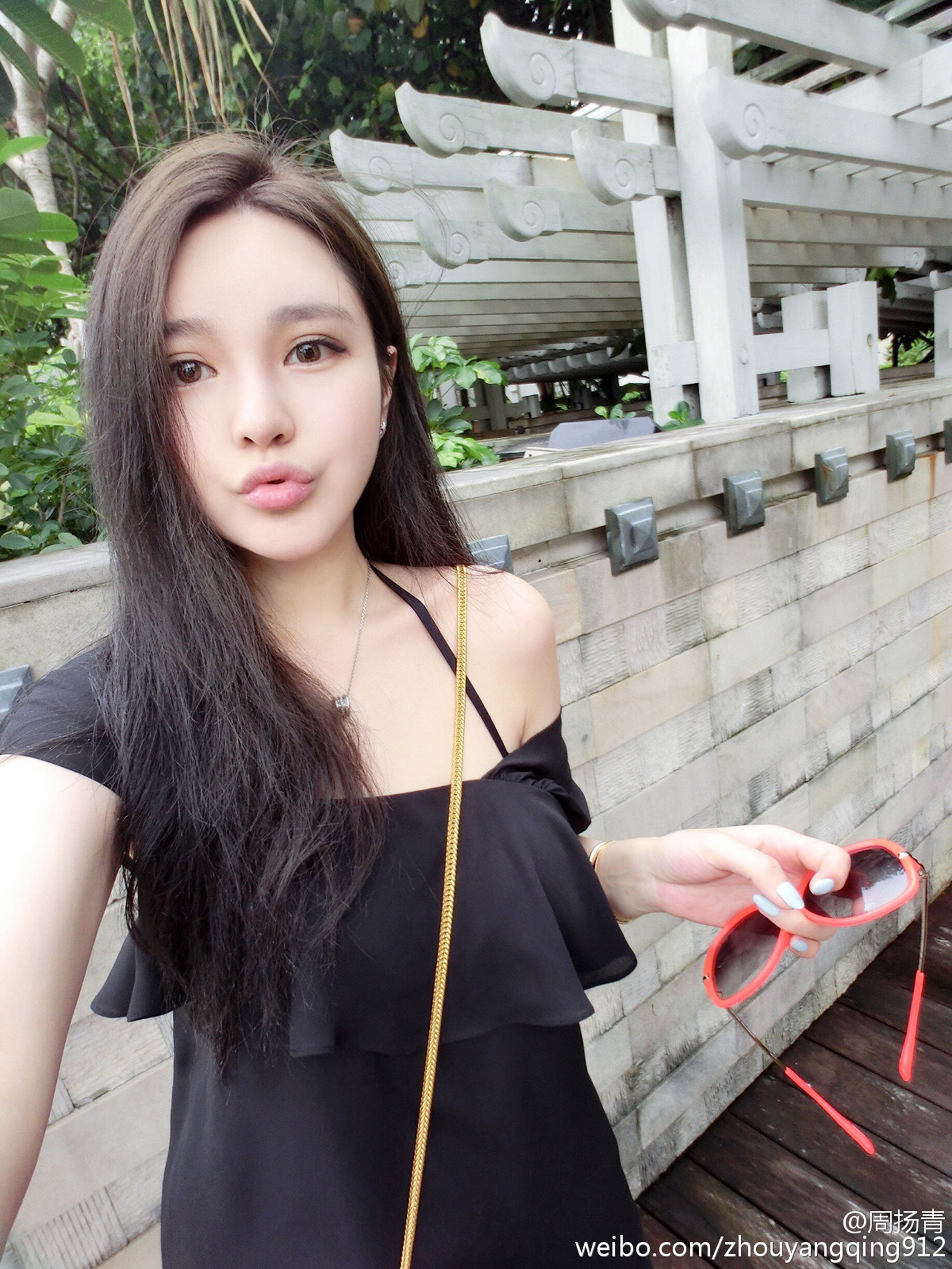 Zhou is a Beijing fashion blogger with an online beauty shop. She has been nicknamed Little Angelababy because of her resemblance to the Hong Kong actress.