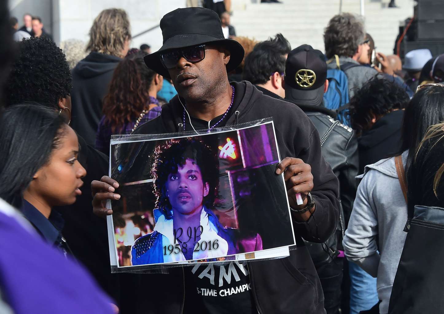 A Prince fan holds up a poster at a tribute concert in Los Angeles, California on May 6, 2016.