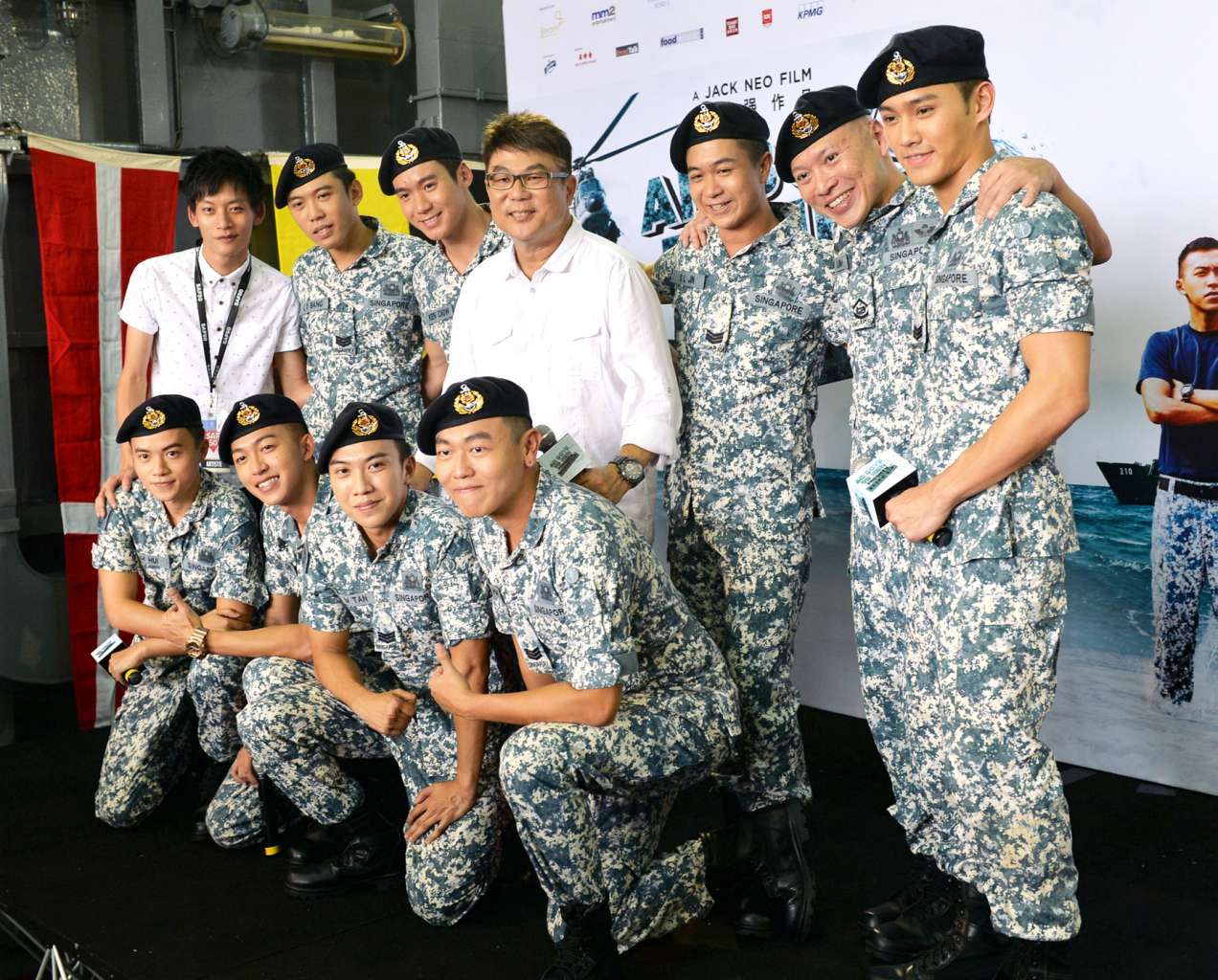 Director Jack Neo (standing, fourth from left) with the cast of Ah Boys To Men 3. PHOTO: SPH