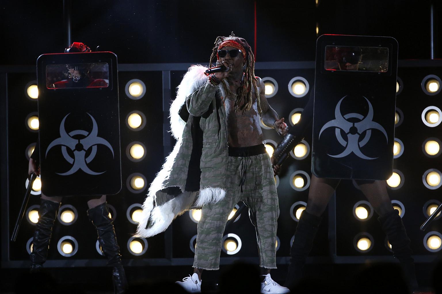 Rapper Lil Wayne performing at the 2017 Billboard Music Awards.
