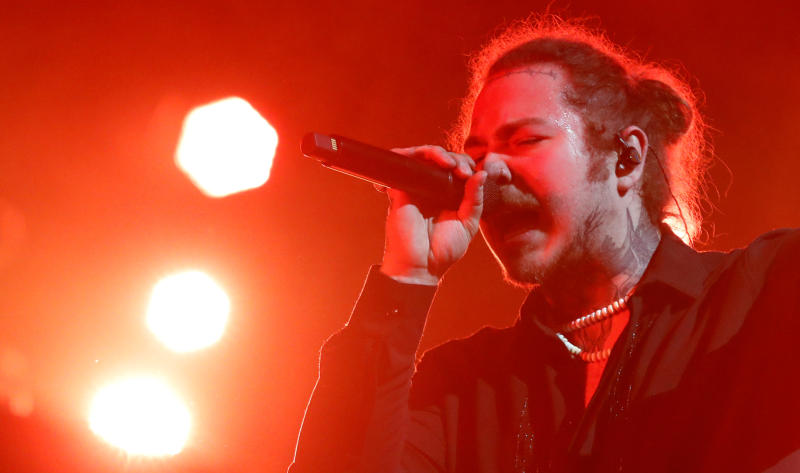 Post Malone performs at the Coachella Valley Music and Arts Festival in Indio, California, on April 14, 2018.