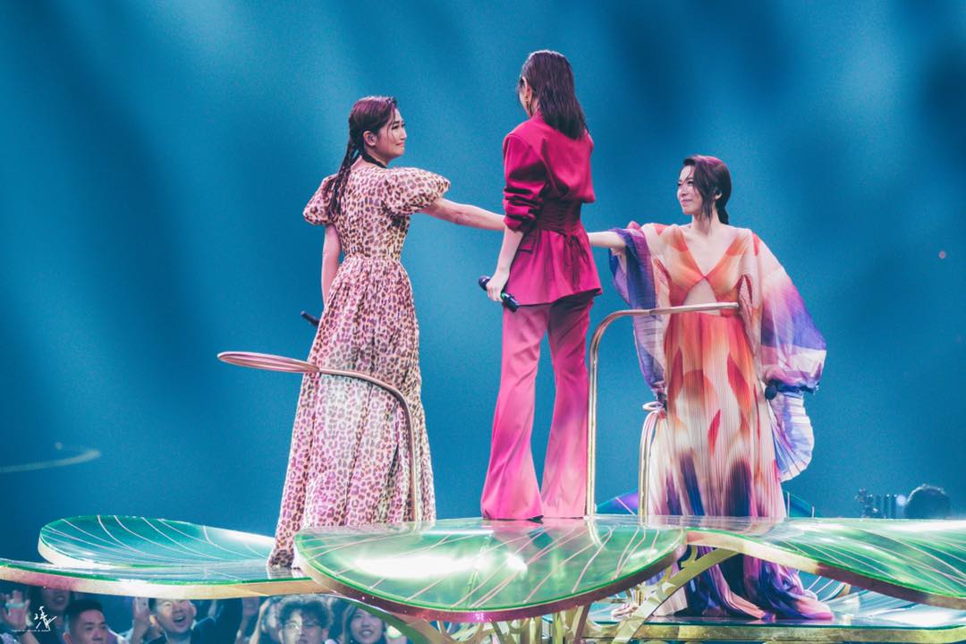 Taiwanese girl band S.H.E are known for their camaraderie and it was on show during their performance at Taiwan's Golden Melody Awards at the Taipei Arena on Saturday (June 29).
