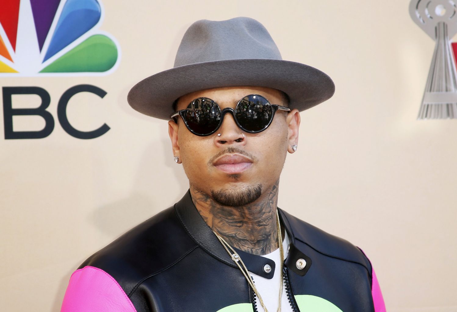 Singer Chris Brown poses at the 2015 iHeartRadio Music Awards in Los Angeles, California.