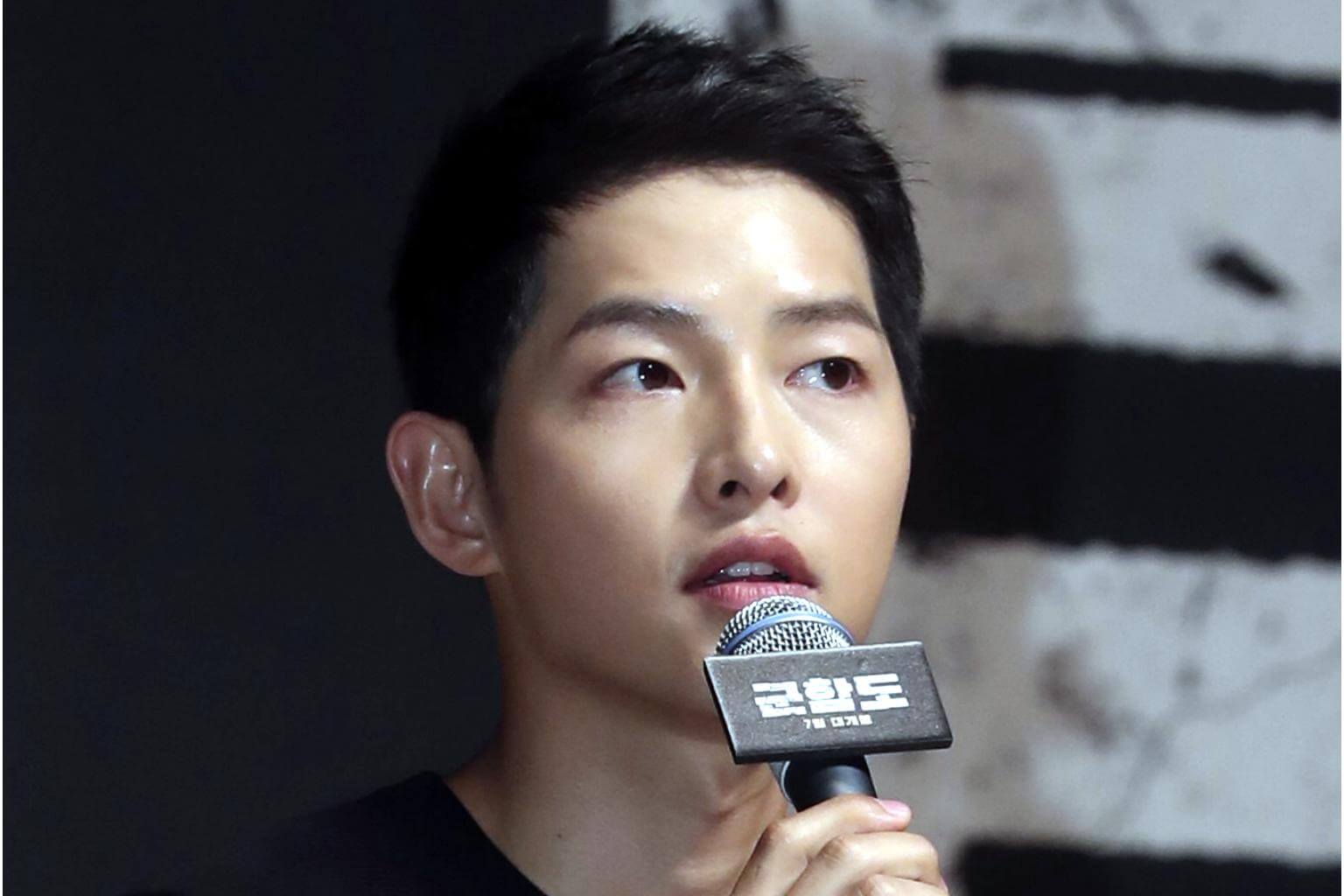 South Korean actor Song Joong Ki speaks during a press event for their new movie The Battleship Island in Seoul, on June 15, 2017.