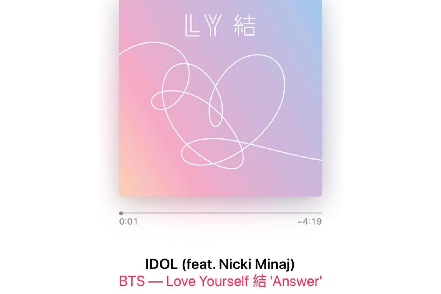 The version of Idol featuring Minaj was released digitally on the same day. But as her version is special digital track, it is not included in the physical copy of Love Yourself: Answer, which features the seven-member boyband alone in the same track.