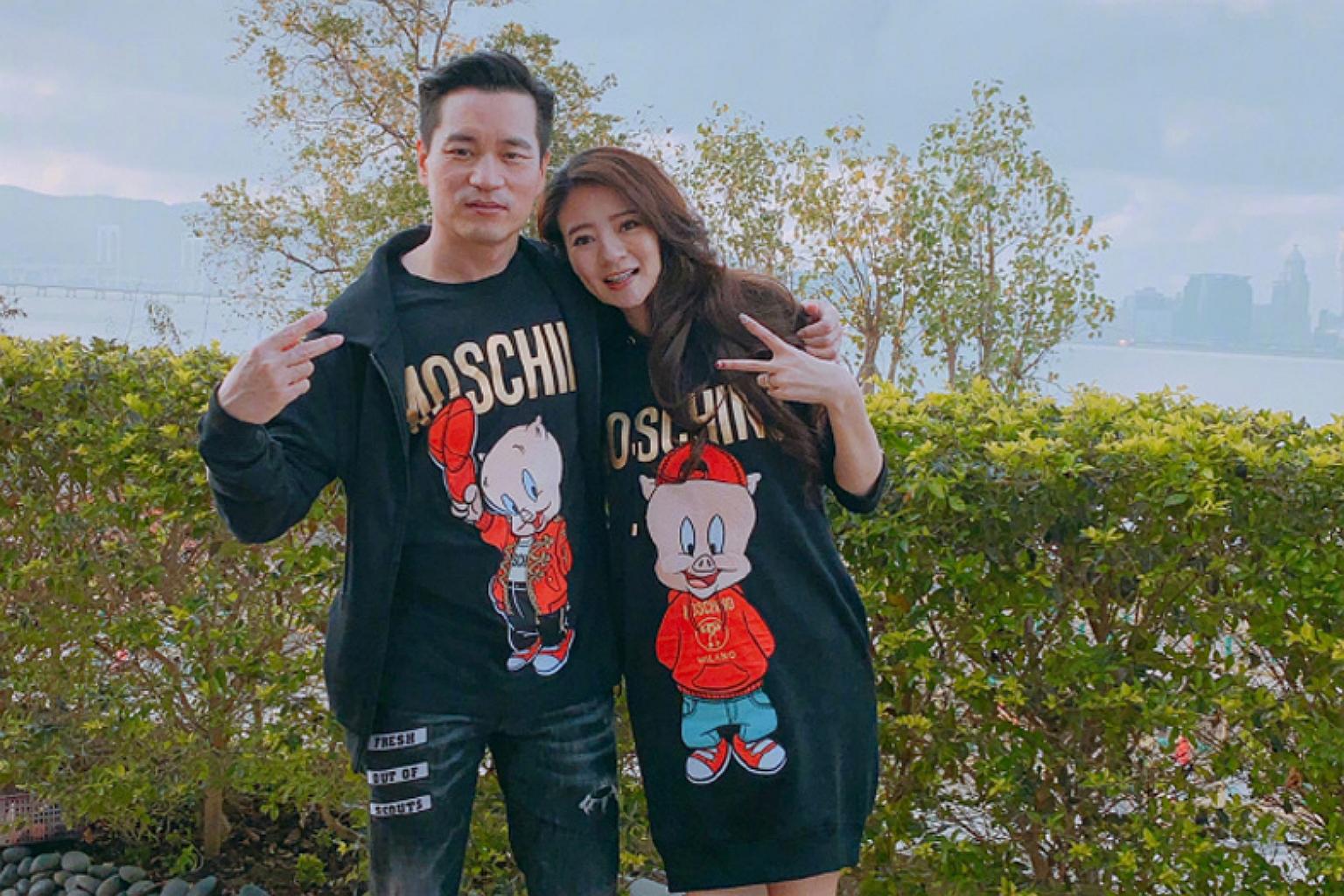 Taiwanese actress Ady An posted four photos along with the announcement, including a photo of her and Macau businessman Levo Chan in Moschino Porky Pig-motif T-shirts.