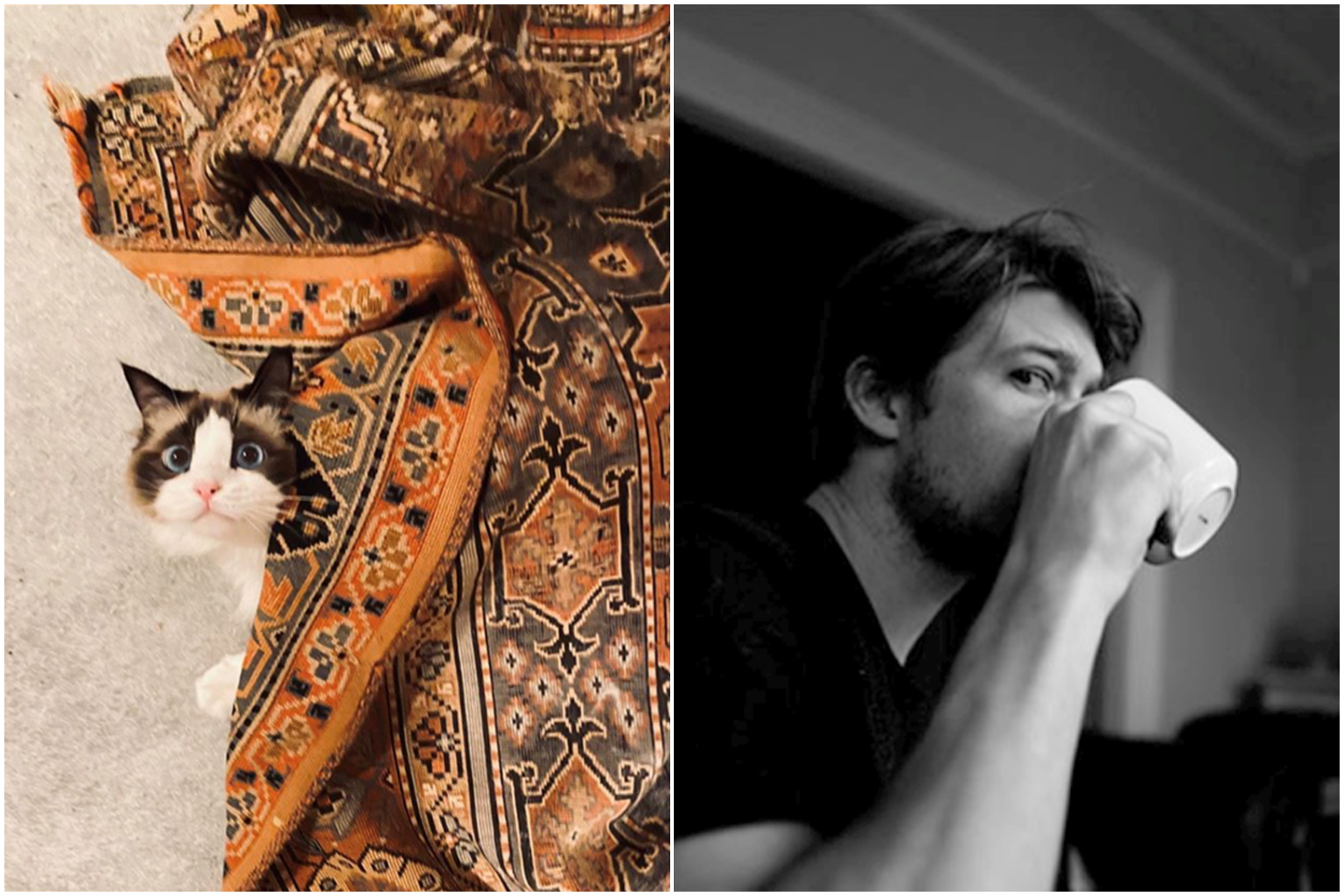 The images include one of Taylor Swift's cat Benjamin Button and one of himself drinking coffee, which was believed to be taken by Swift.