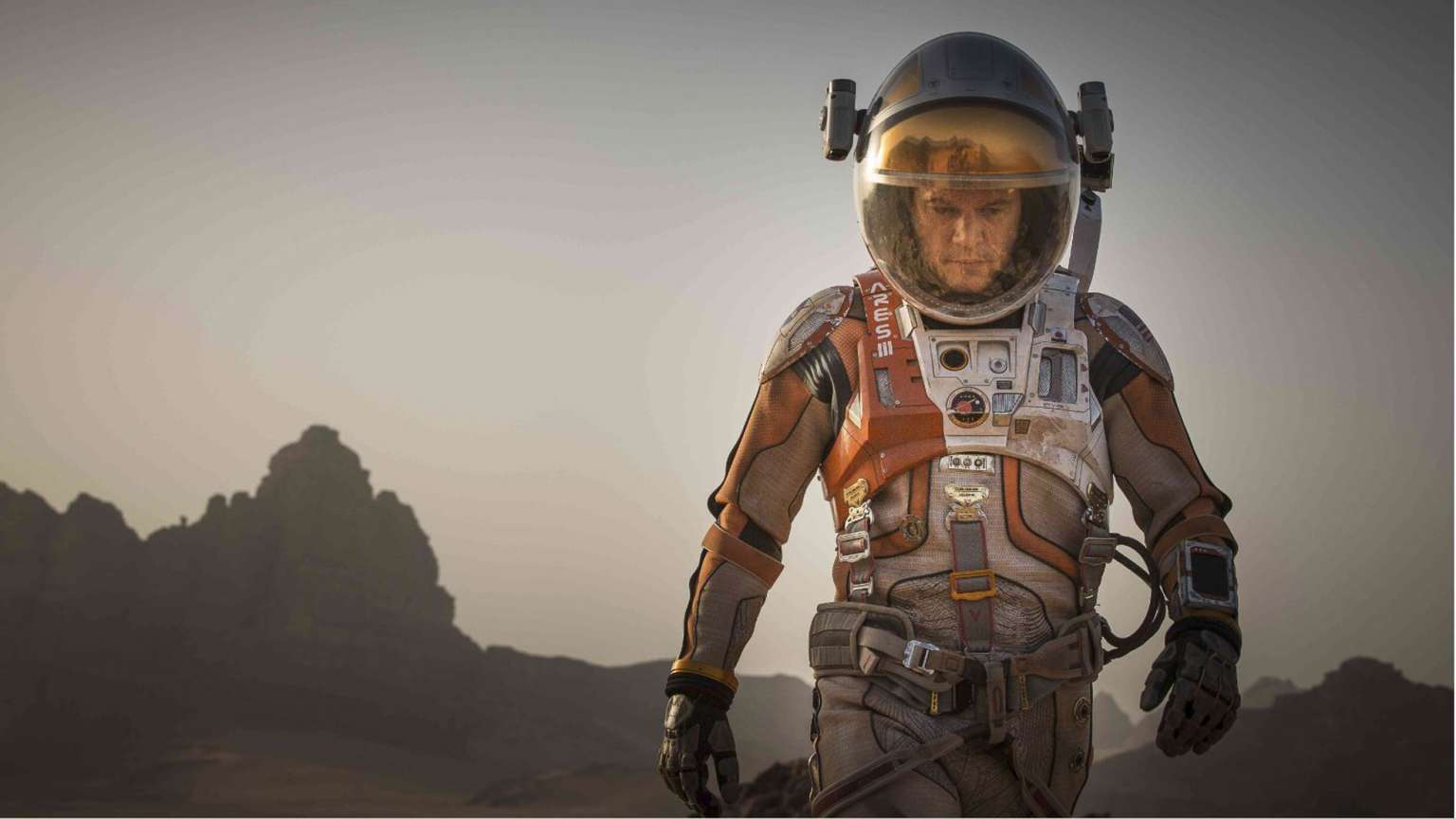 Matt Damon stars in The Martian as an astronaut stranded on the red planet.