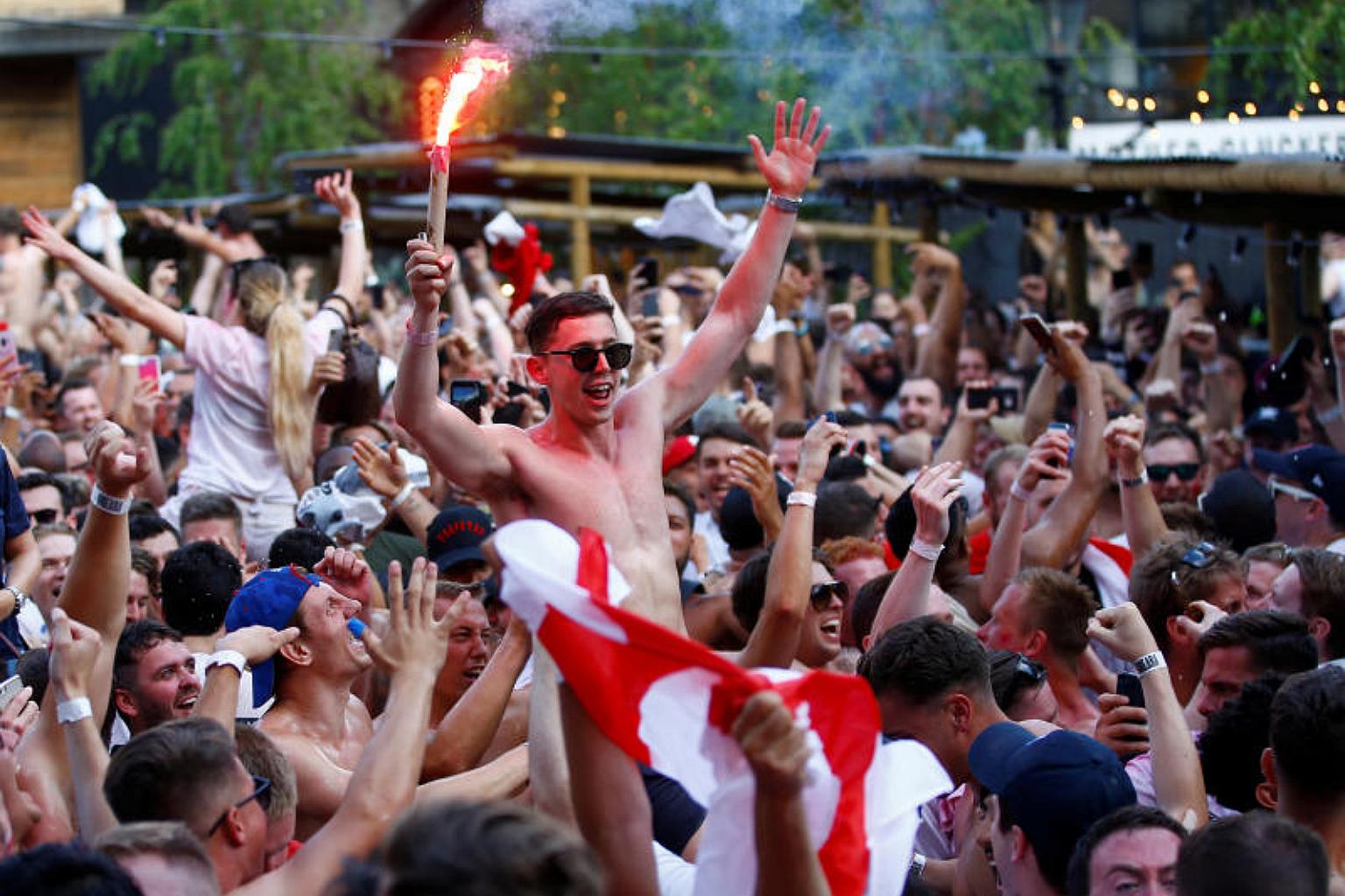 England fans watching the World Cup match between Sweden and England in London, on July 7, 2018.