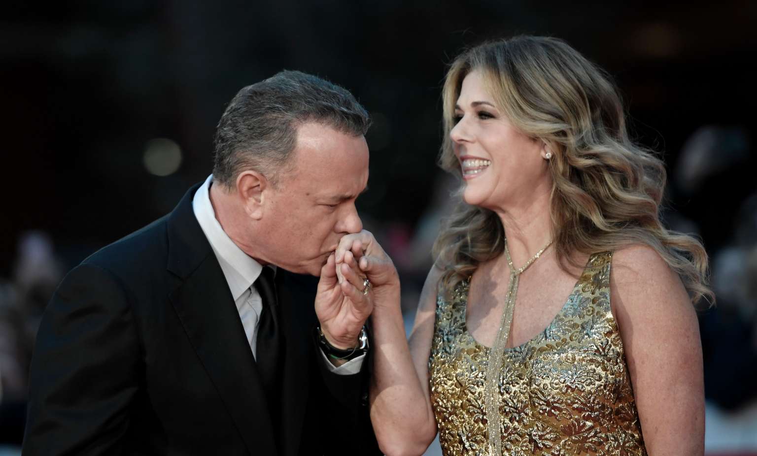 US Actor Tom Hanks arrives with his wife Rita Wilson at the Rome Film Festival on Oct 13, 2016.