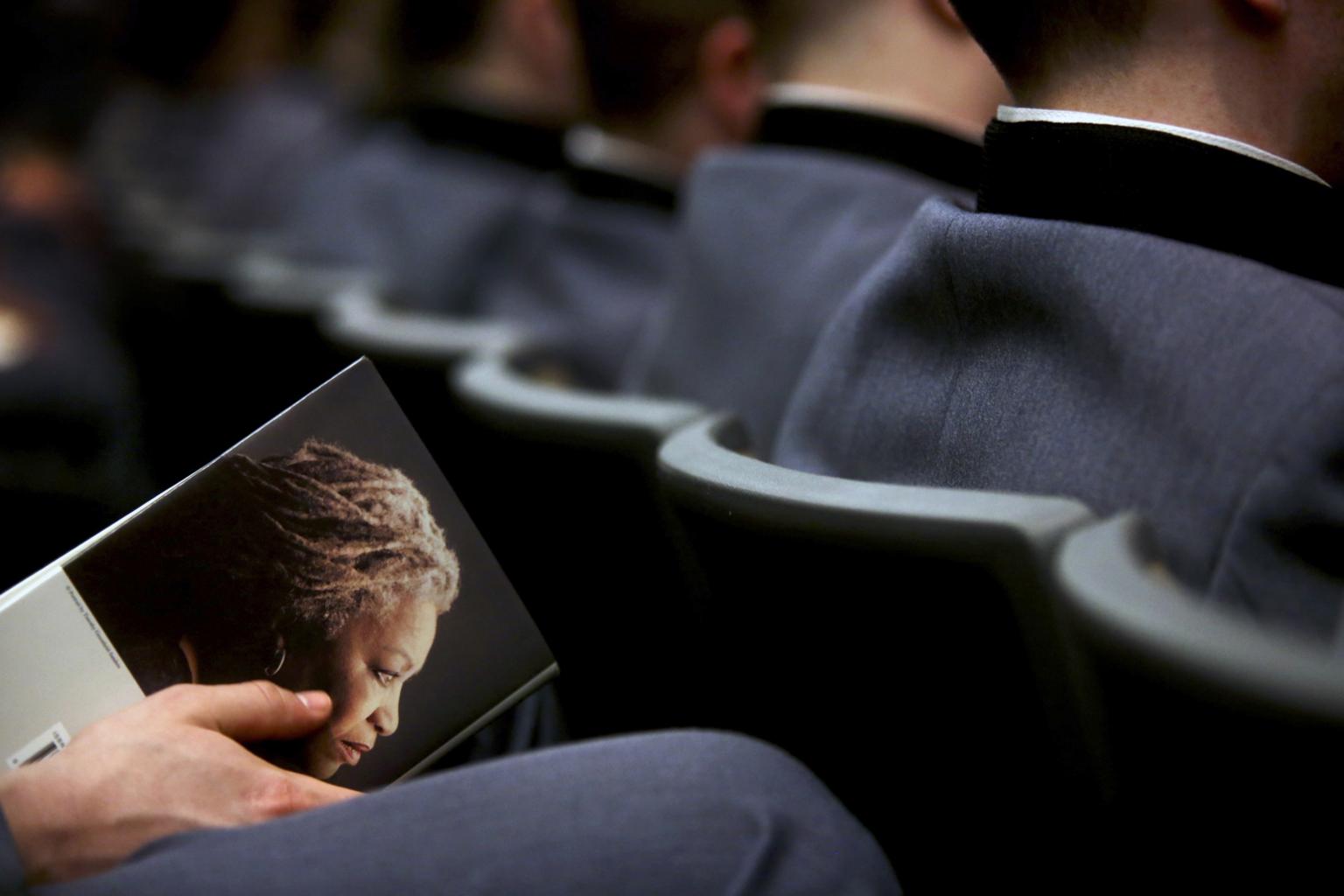 In a picture taken on March 22, 2013, students attend a reading by the author Toni Morrison at the United States Military Academy in West Point, New York.