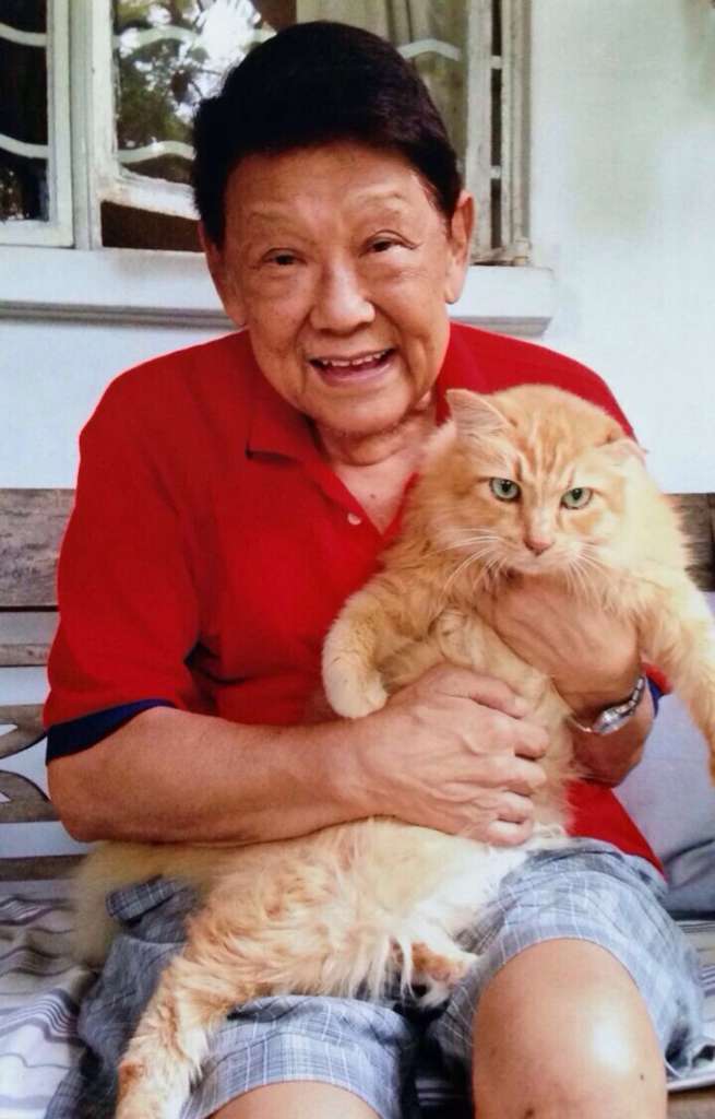 Radio and TV veteran Tan Swee Leong with his cat Ouzo.