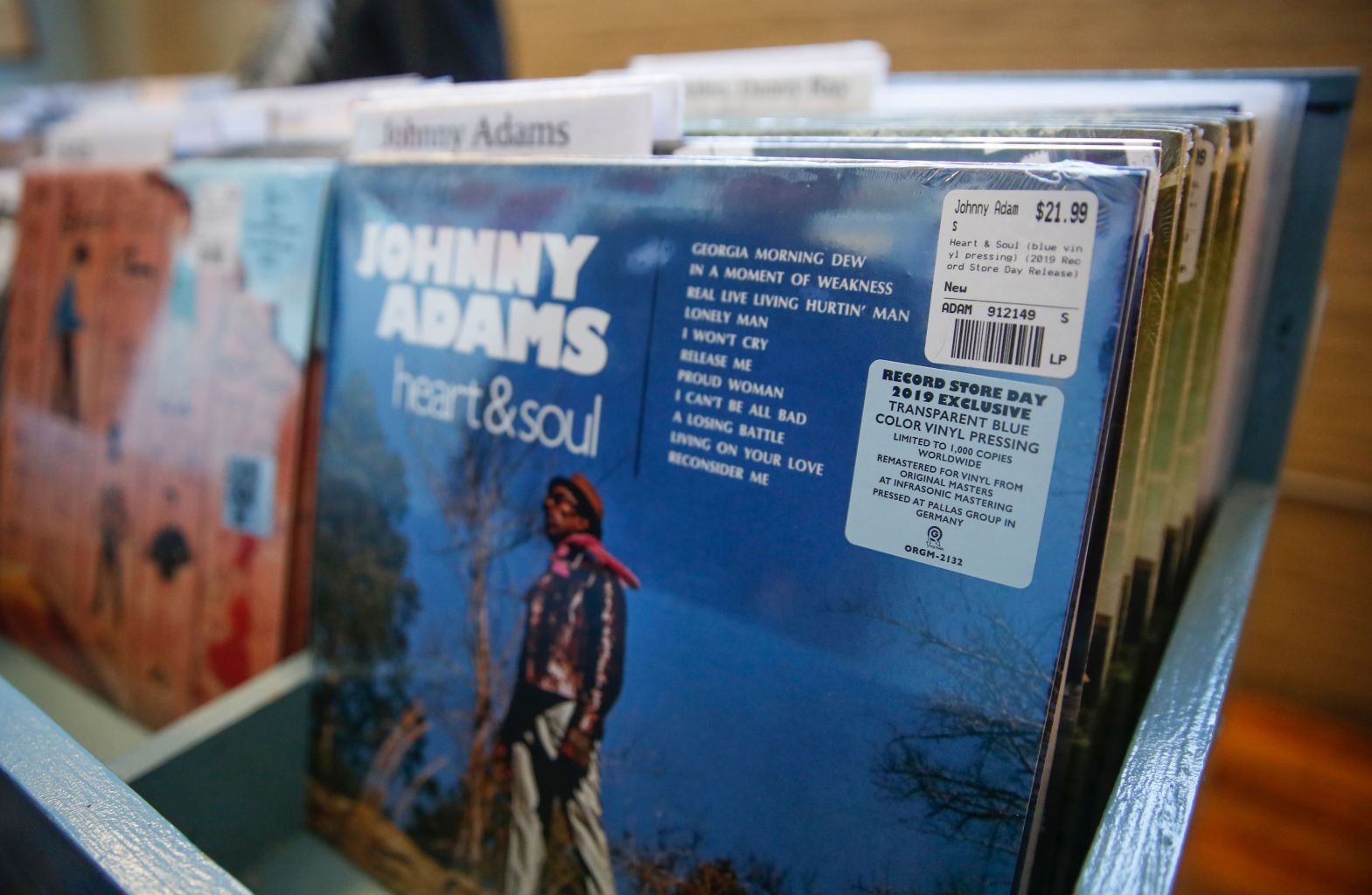 Vinyl records sit on display at Dusty Groove music store in Chicago.