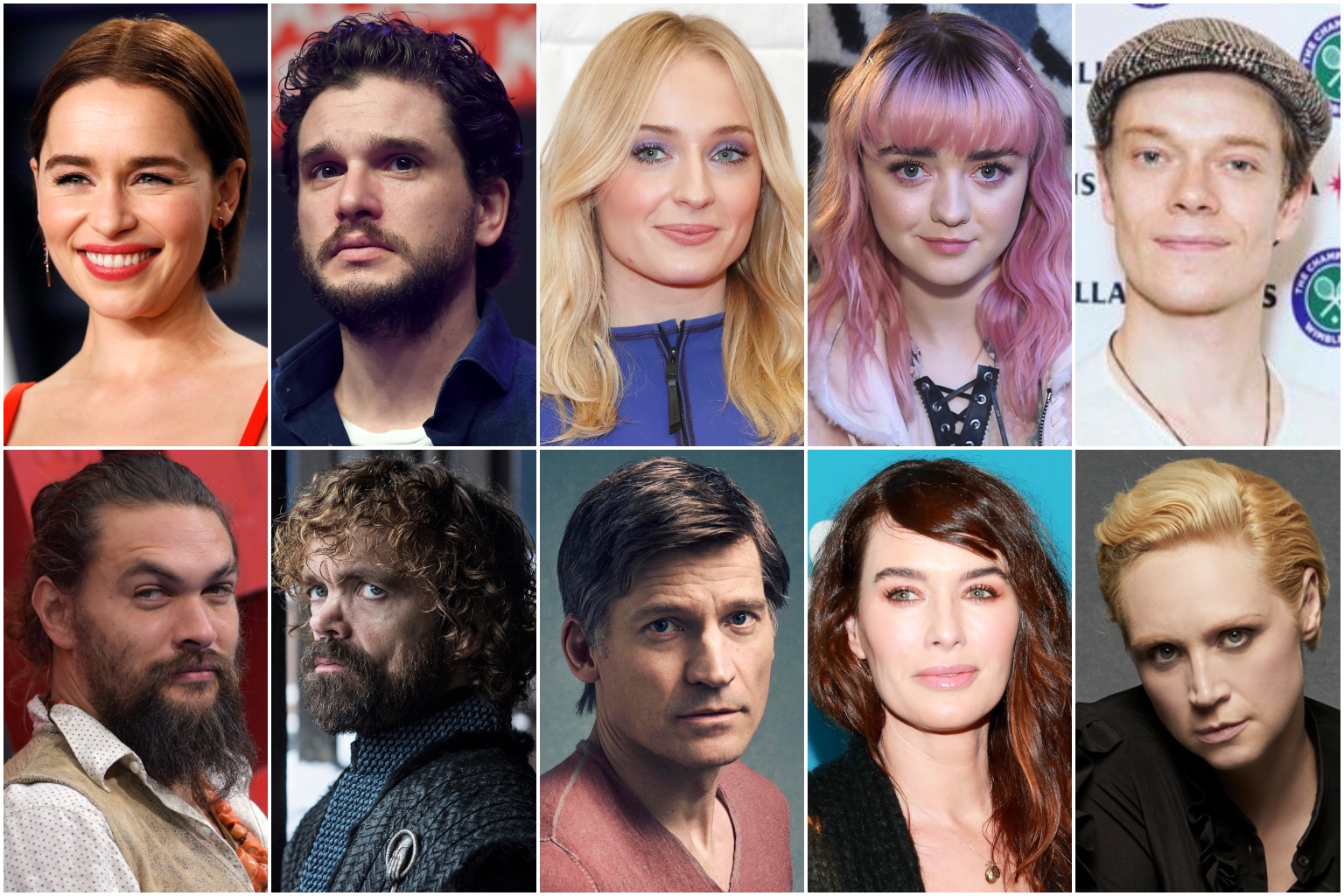 Stars of Game of Thrones (clockwise from top left) Emilia Clarke, Kit Harington, Sophie Turner, Maisie Williams, Alfie Allen, Gwendoline Christie, Lena Heady, Nikolaj Coster-Waldau, Peter Dinklage and Jason Momoa.