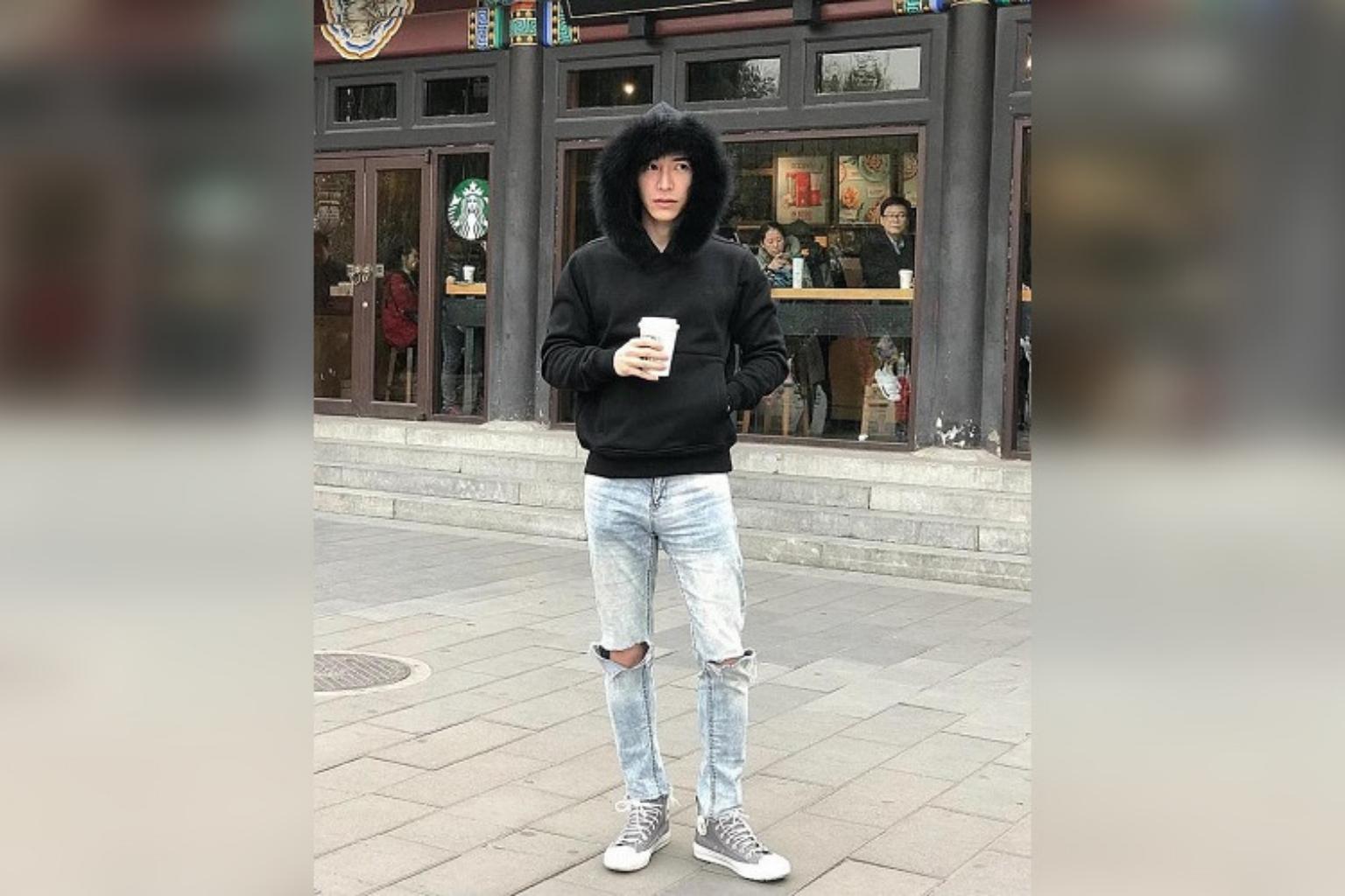He said: "It was just a casual outfit when I went out with my dad and sister who visited me in Beijing. It was pretty cold and the hoodie is lined with fur. I just wanted to make it casual with ripped jeans and Converse sneakers."